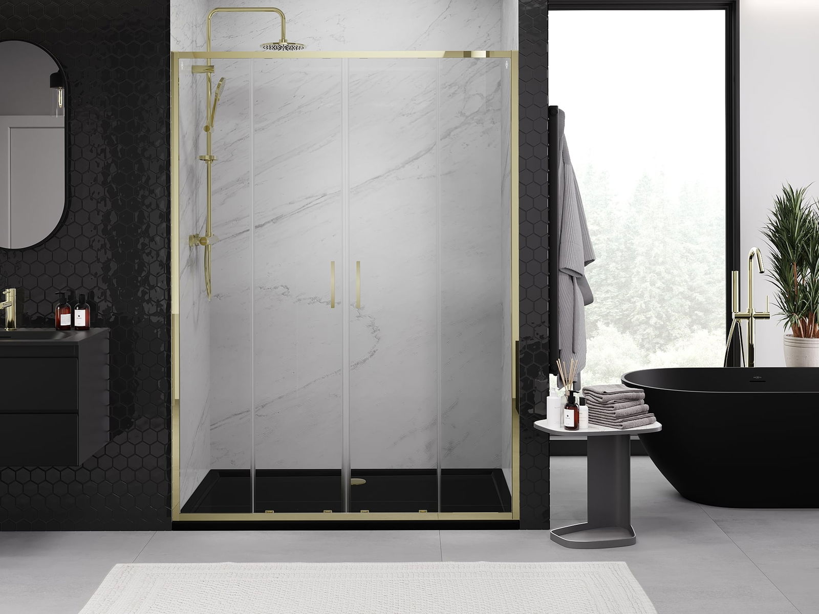 Praktická a pohodlná rukojeť je vyrobena z odolného a trvanlivého kovu. Moderní tvar ve spojení s povrchovou úpravou, která ladí s barvou profilů, dodává celku moderní a stylový vzhled, zdůrazňující estetiku každé koupelny.