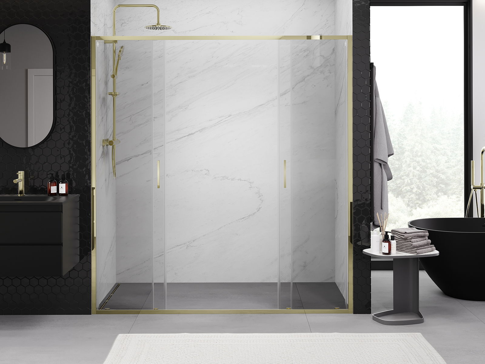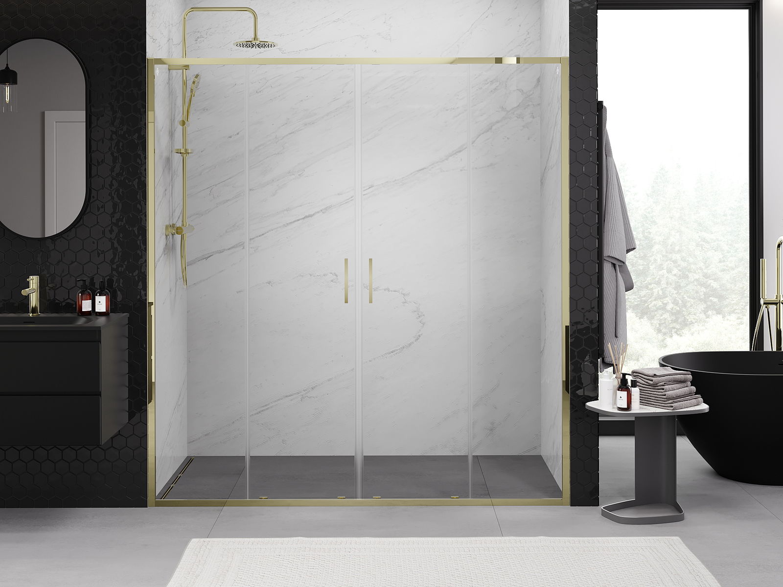 Mexen Exo dvoukřídlé posuvné sprchové dveře 170 cm, transparentní, zlaté - 8152-170-000-50-00