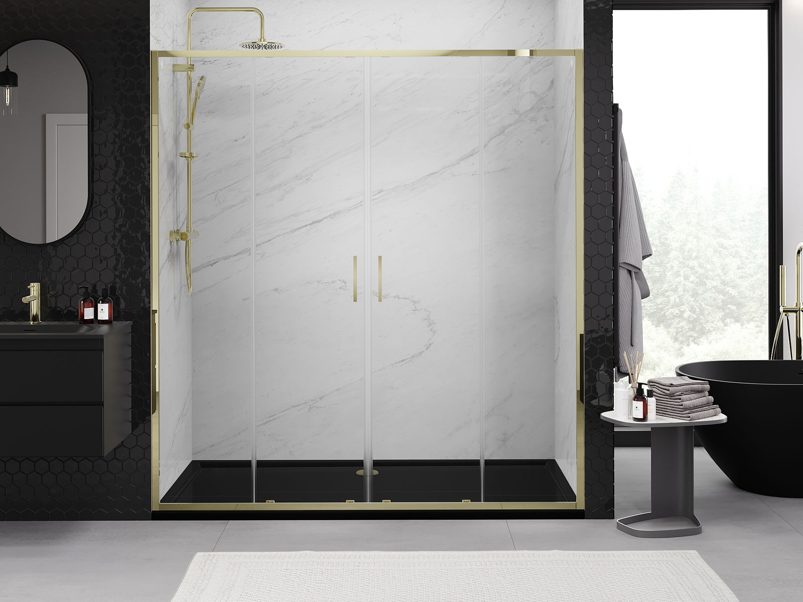Praktická a pohodlná rukojeť je vyrobena z odolného a trvanlivého kovu. Moderní tvar ve spojení s povrchovou úpravou, která ladí s barvou profilů, dodává celku moderní a stylový vzhled, zdůrazňující estetiku každé koupelny.