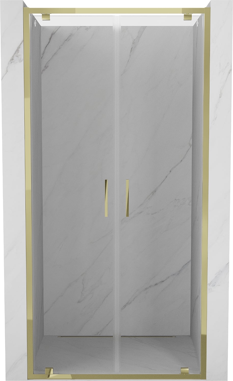 Mexen Exo dvoukřídlé otevírací sprchové dveře 100 cm, transparentní, zlaté - 8182-100-000-50-00
