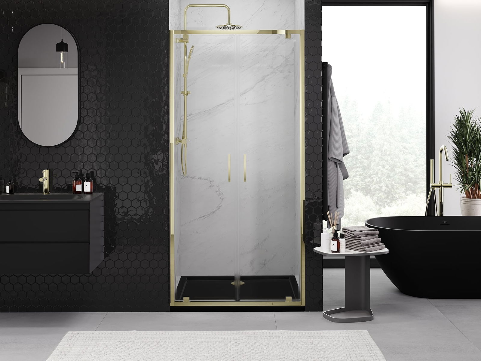 Praktická a pohodlná rukojeť je vyrobena z odolného a trvanlivého kovu. Moderní tvar ve spojení s povrchovou úpravou, která ladí s barvou profilů, dodává celku moderní a stylový vzhled, zdůrazňující estetiku každé koupelny.