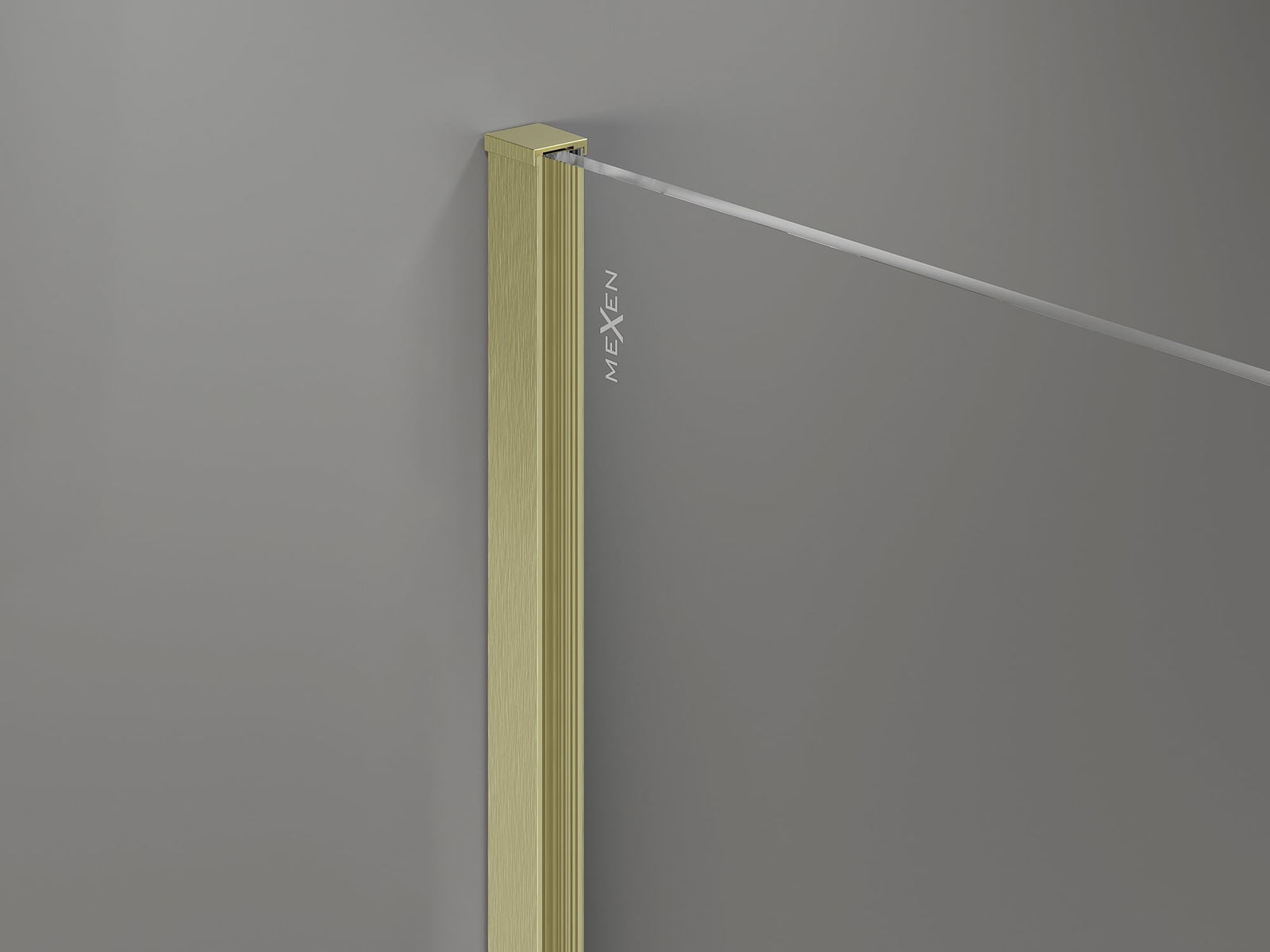 Mexen Kioto-X sprchová zástěna Walk-in 60 x 200 cm, transparentní 10 mm, zlatá kartáčovaná - 800-060-101-55-00-X