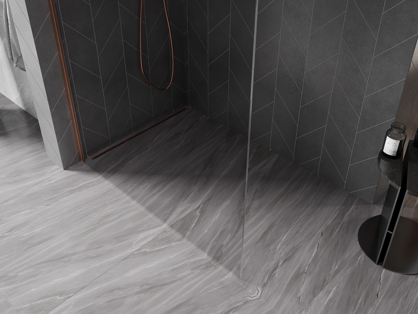 Mexen Kioto-X sprchová stěna Walk-in 160 x 200 cm, transparentní 10 mm, kartáčovaná měď - 800-160-101-65-00-X