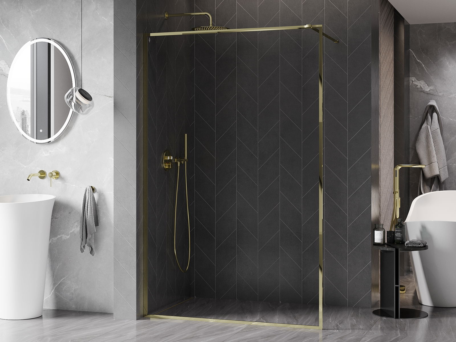 Mexen Kioto-XF sprchová stěna Walk-in s rámem 160 x 202 cm, transparentní 10 mm, zlatá - 800-160-104-50-00-X