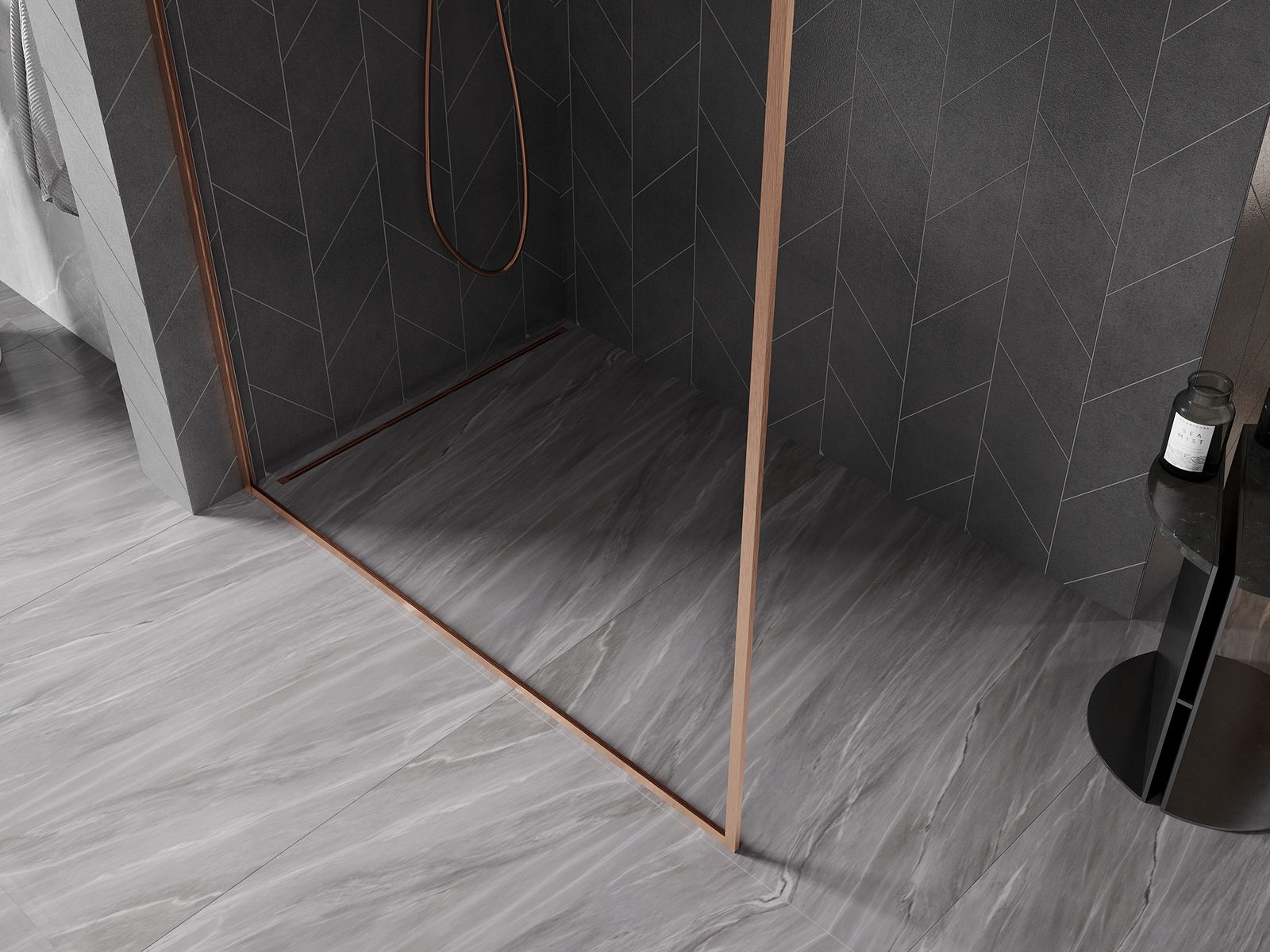 Mexen Kioto-XF Sprchová stěna Walk-in s rámem 100 x 202 cm, transparentní 10 mm, kartáčovaná měď - 800-100-104-65-00-X