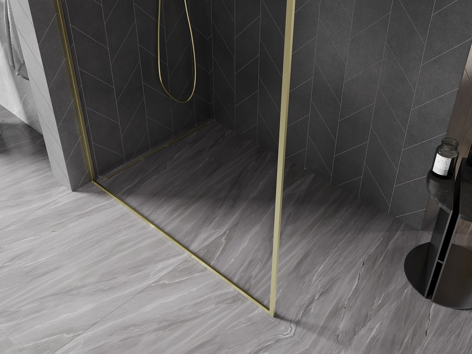 Mexen Kioto-F L sprchová stěna Walk-in s rámem 115 x 202 cm, transparentní 8 mm, zlatá kartáčovaná - 800-115-174-55-00