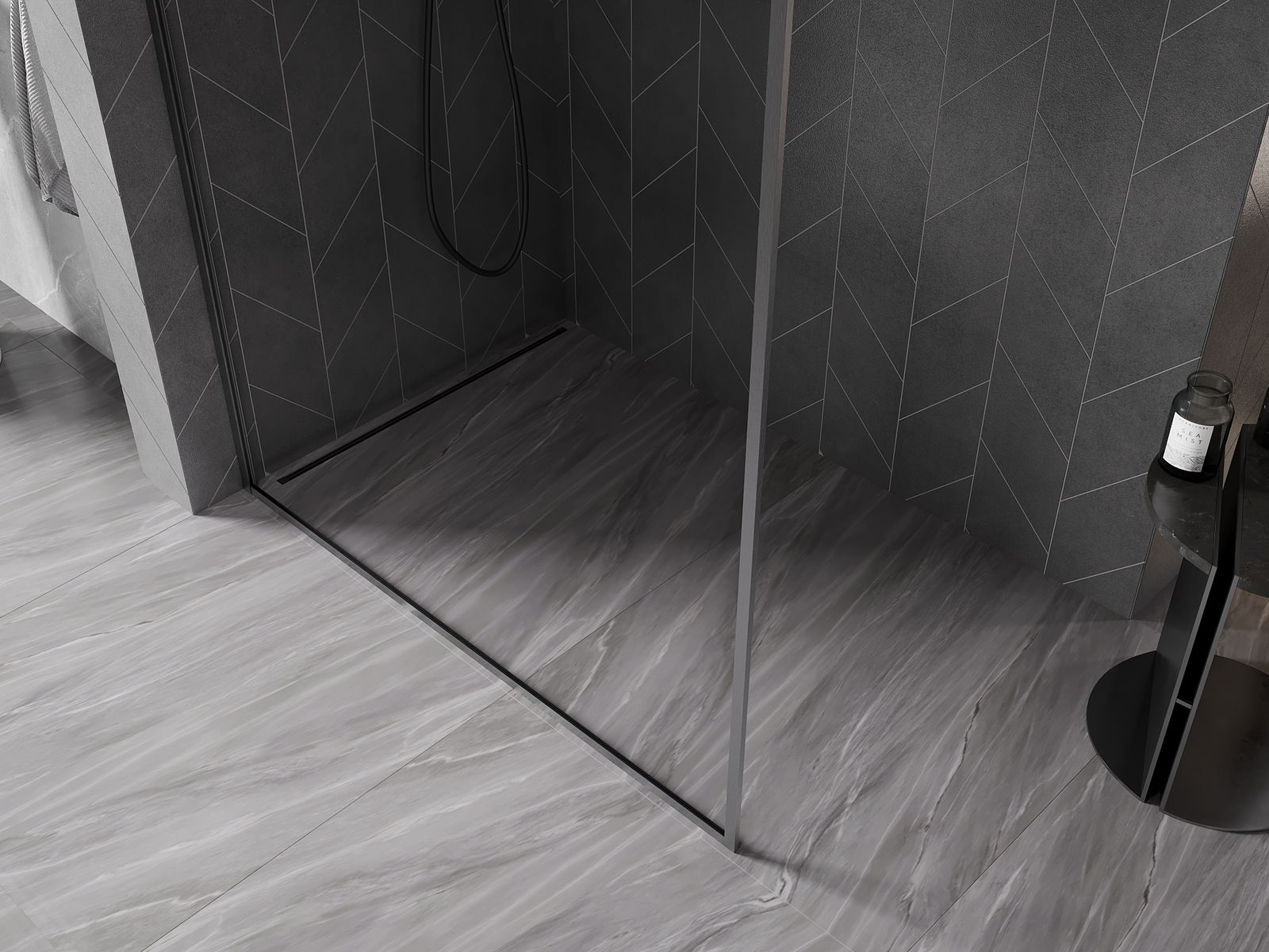 Mexen Kioto-F L Sprchová zástěna Walk-in s rámem 90 x 202 cm, transparentní 8 mm, kartáčovaná gun gray - 800-090-174-66-00