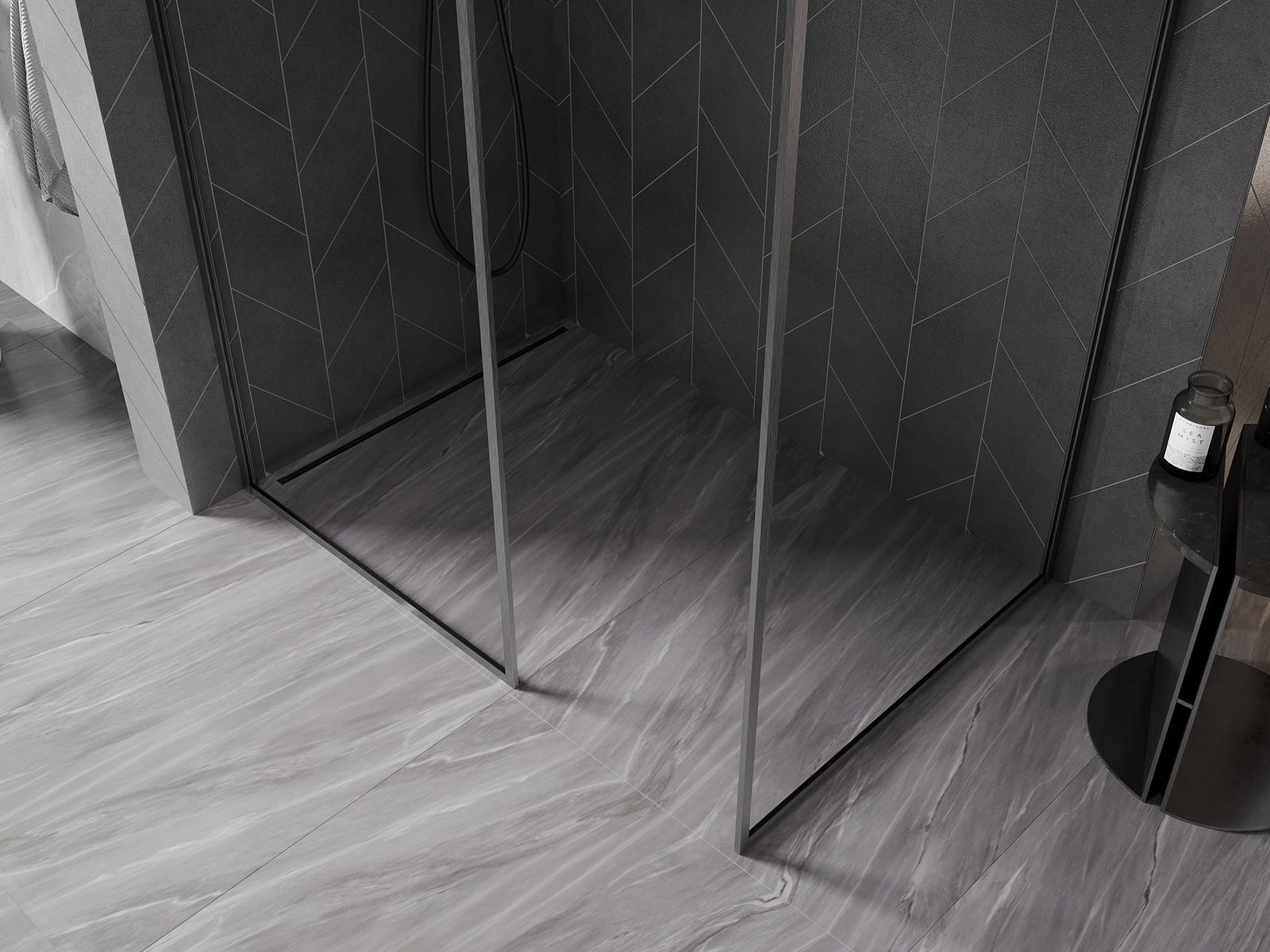 Mexen Kioto-XF sprchová stěna Walk-in s rámem 120x90 cm, transparentní 10 mm tmavě šedá kartáčovaná - 800-120-202-04-66-090-XF