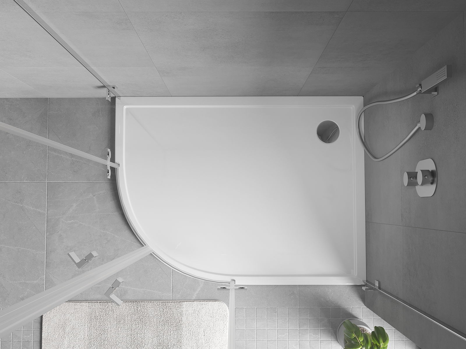 Mexen Flow půlkruhový asymetrický slim pravý 100 x 80 cm, bílý lesk - 46Q108010R