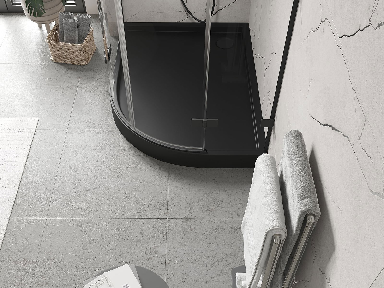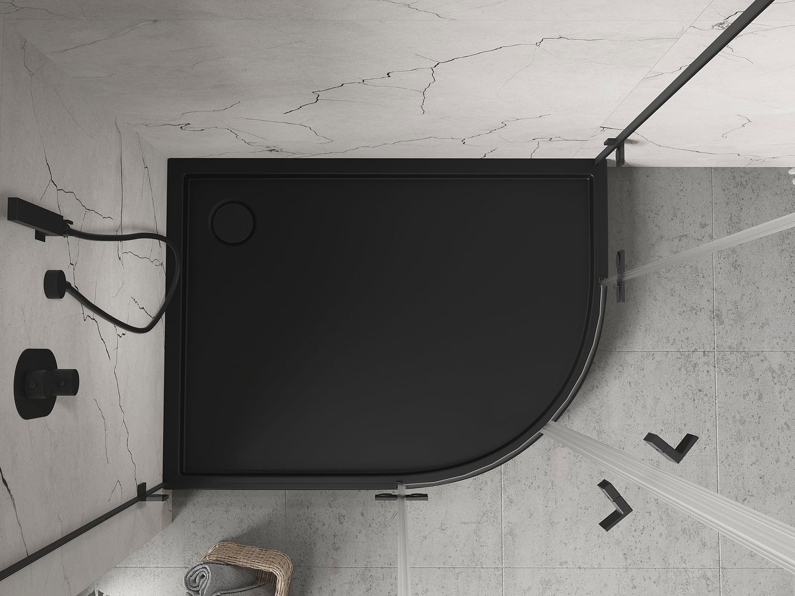 Mexen Flow+ sprchová vanička půlkruhová asymetrická levá 90 x 80 cm, černá mat - 46Q708090LH