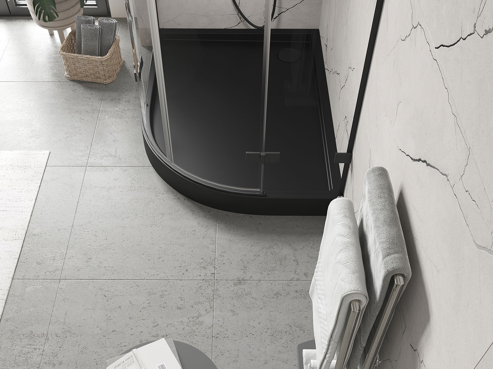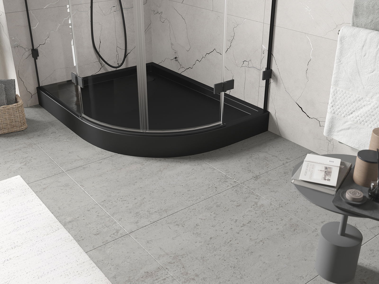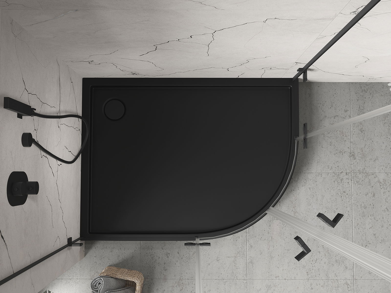 Mexen Flow+ sprchová vanička půlkruhová asymetrická levá 100 x 80 cm, černá mat - 46Q708010LH