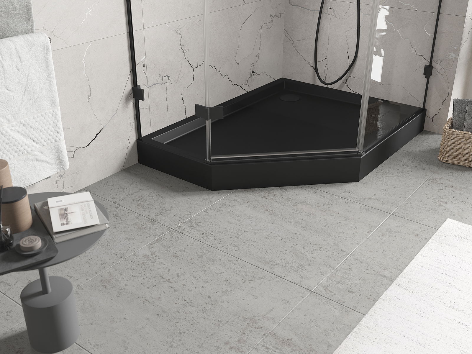 Mexen Flow+ sprchová vanička pětiúhelníková pravá 90 x 80 cm, černý mat - 46P708090RH