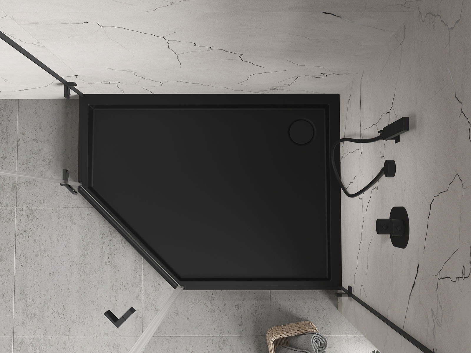 Mexen Flow+ pětiúhelníkový sprchový kout pravý 100 x 80 cm, černý mat - 46P708010RH