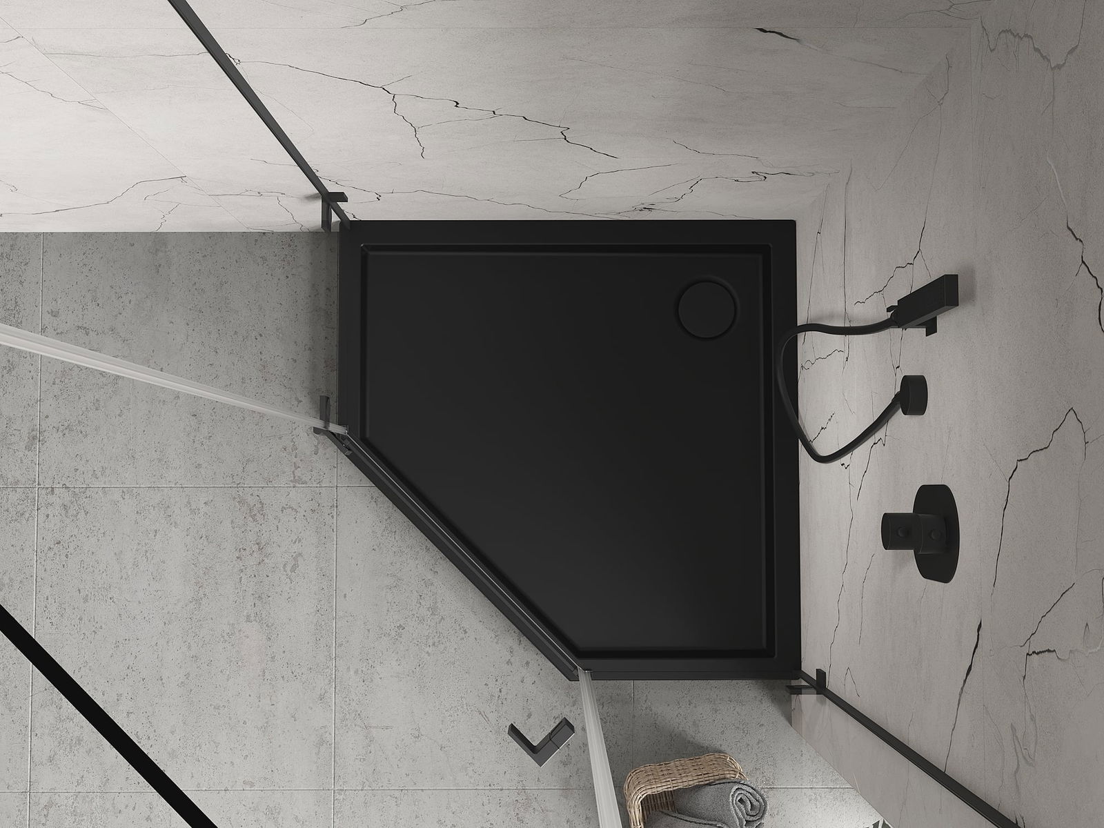 Mexen Flow+ sprchová vanička pětiúhelníková 100 x 100 cm, černý mat - 46P701010H
