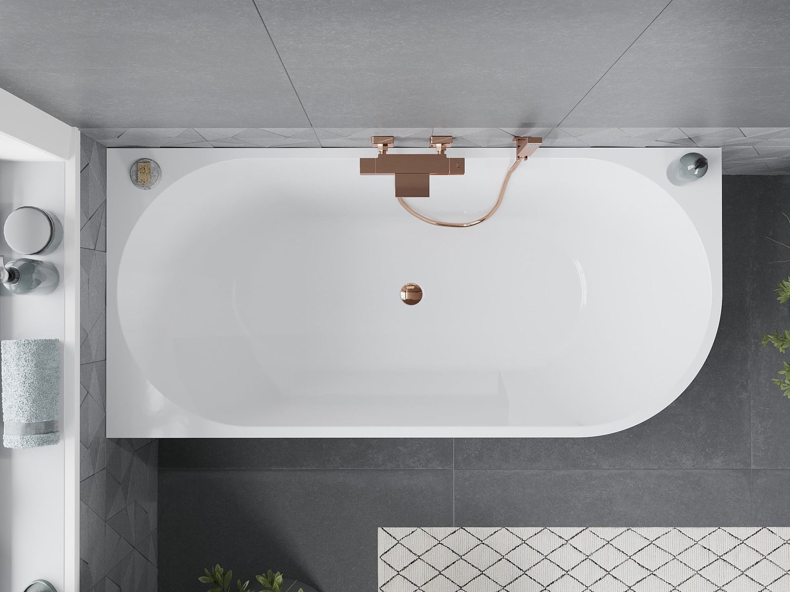 Mexen Mia volně stojící rohová vana levá 140 x 75 cm, bílá, přepad růžové zlato - 52691407500L-60