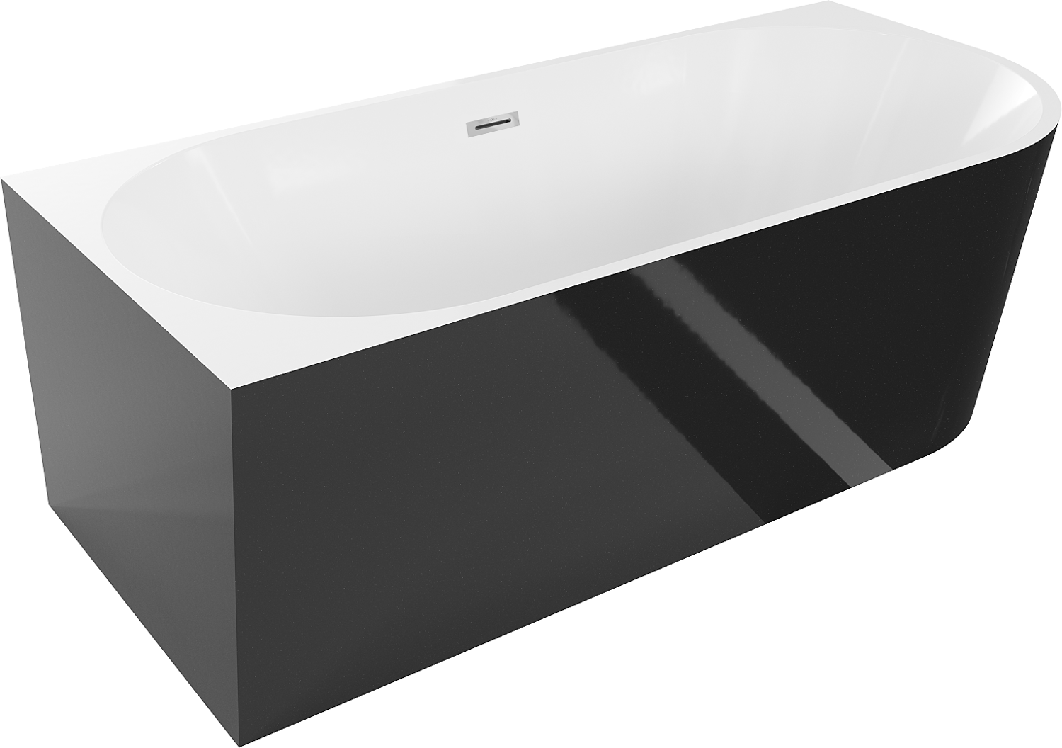 Mexen Mia volně stojící rohová vana levá 140 x 75 cm, bílá/černá, přepad chrom - 52691407575L-01