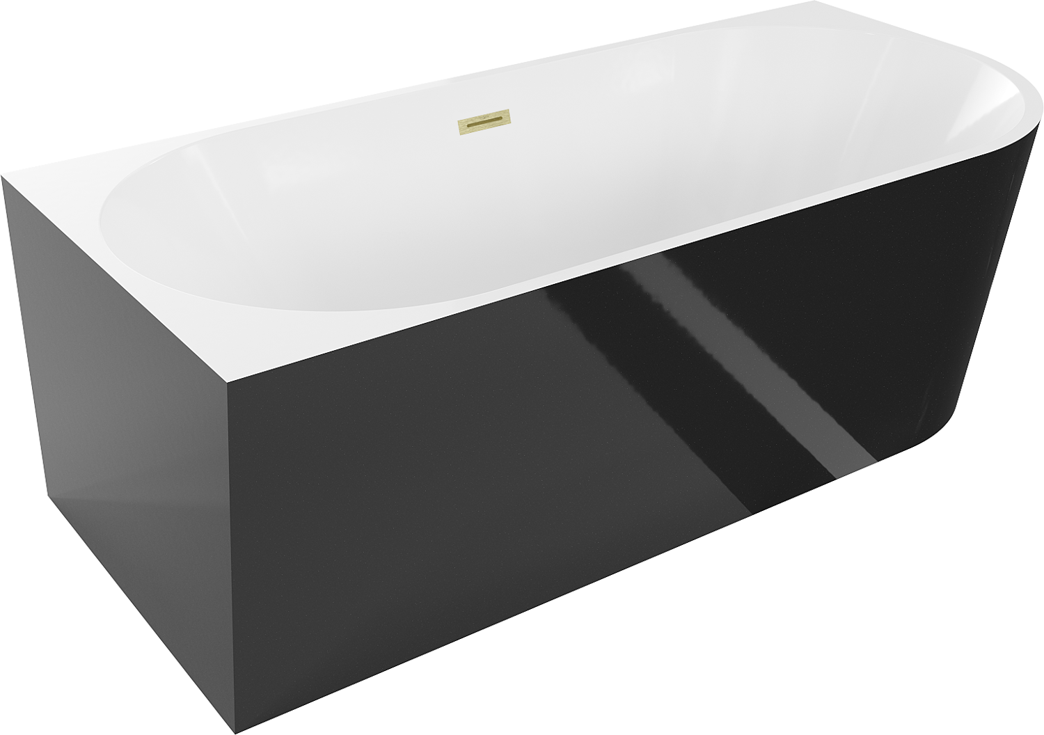 Mexen Mia vana volně stojící rohová levá 140 x 75 cm, bílá/černá, přepad zlatý kartáčovaný - 52691407575L-55