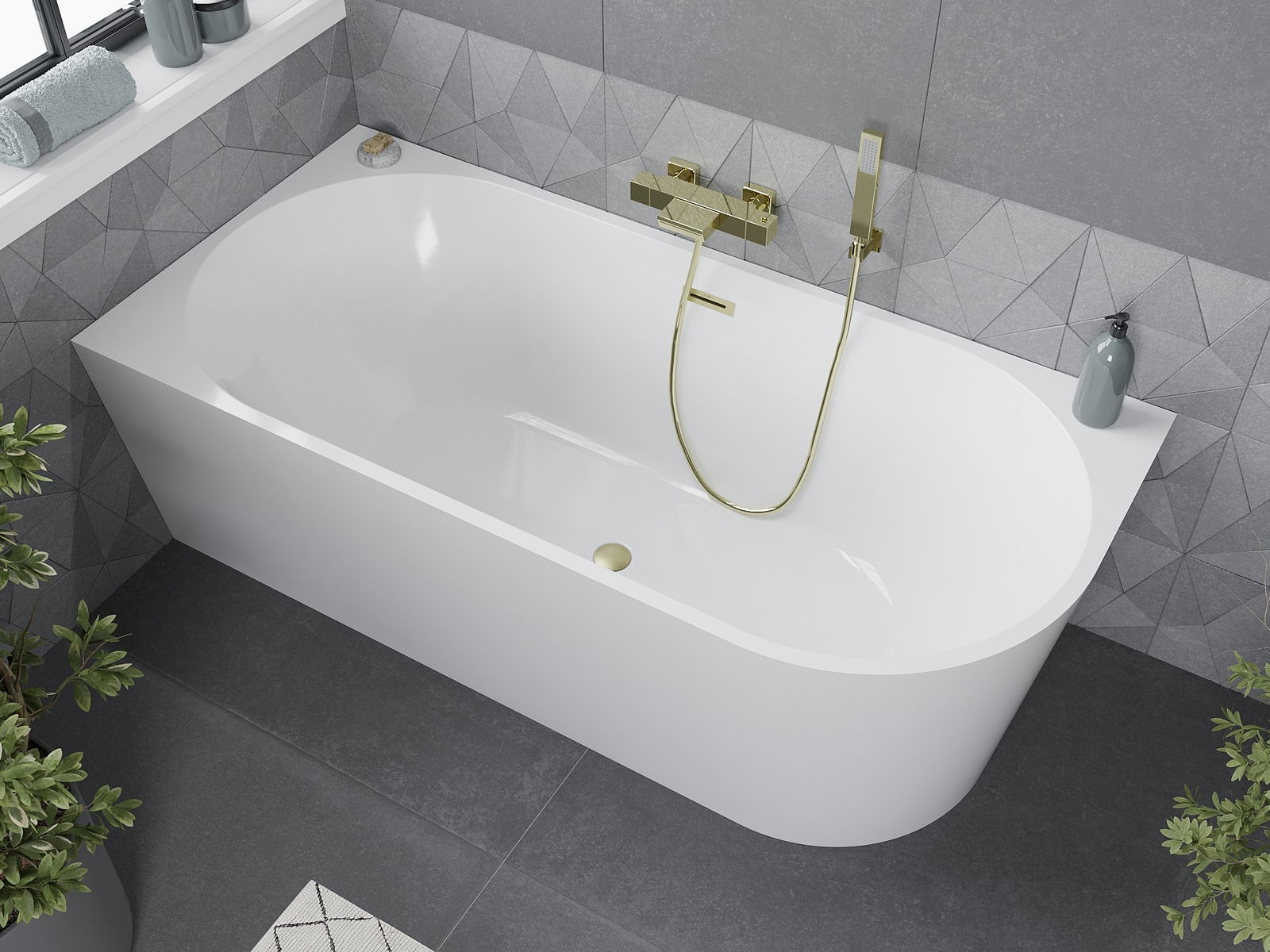 Mexen Mia vana volně stojící rohová levá 160 x 80 cm, bílá, přepad zlatý kartáčovaný - 52691608000L-55