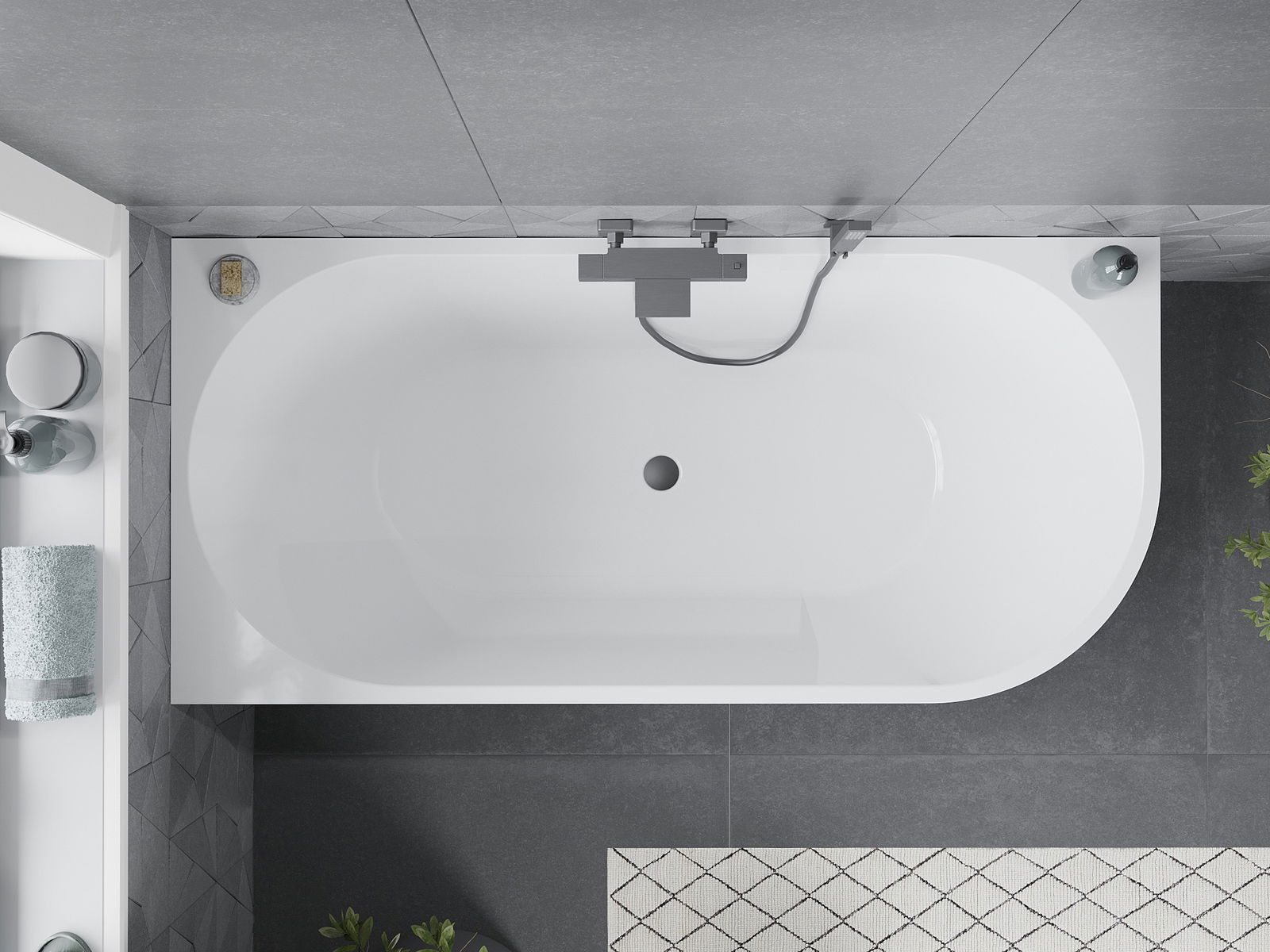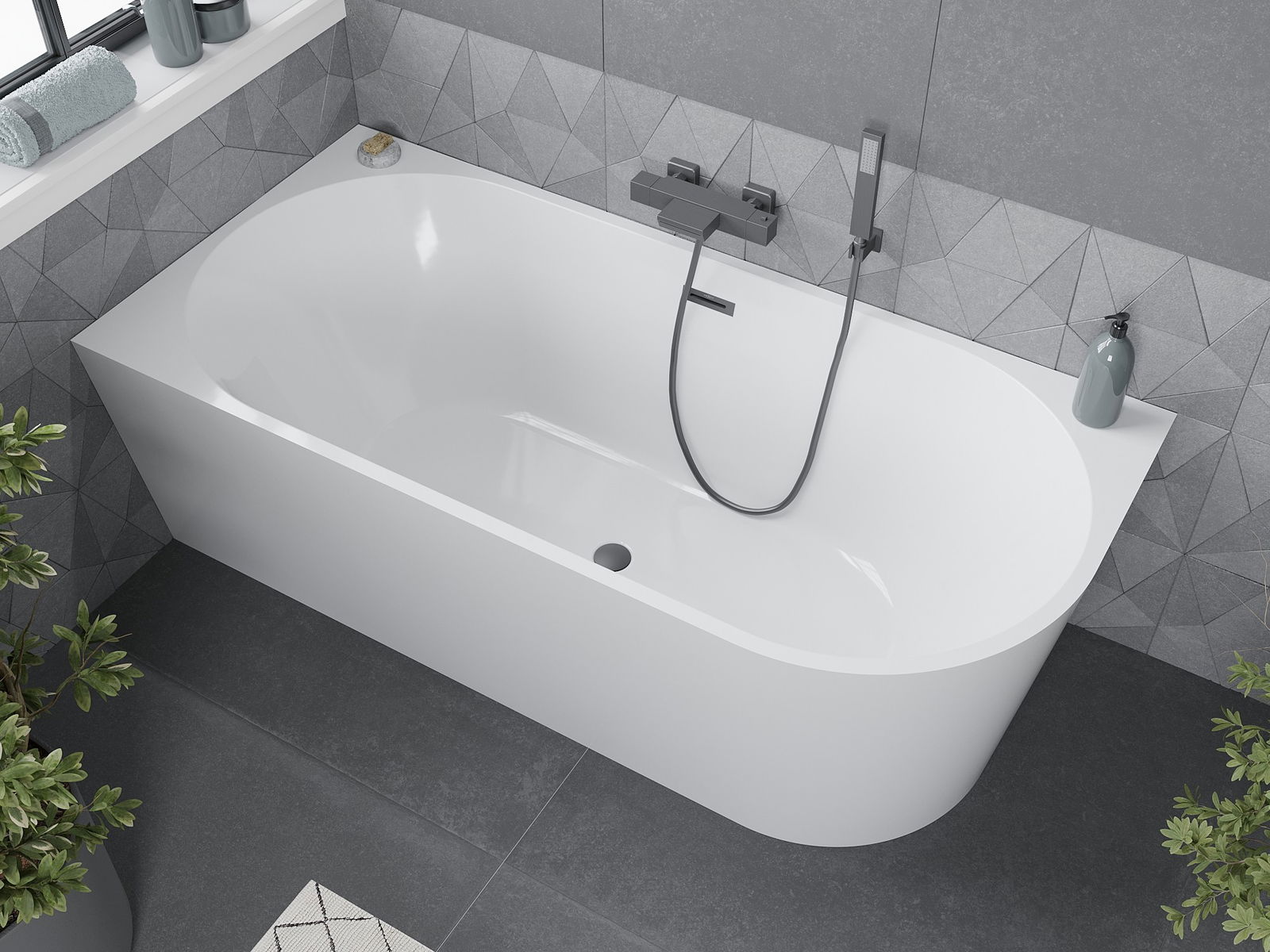 Mexen Mia volně stojící rohová vana levá 160 x 80 cm, bílá, přepad gun metal - 52691608000L-95