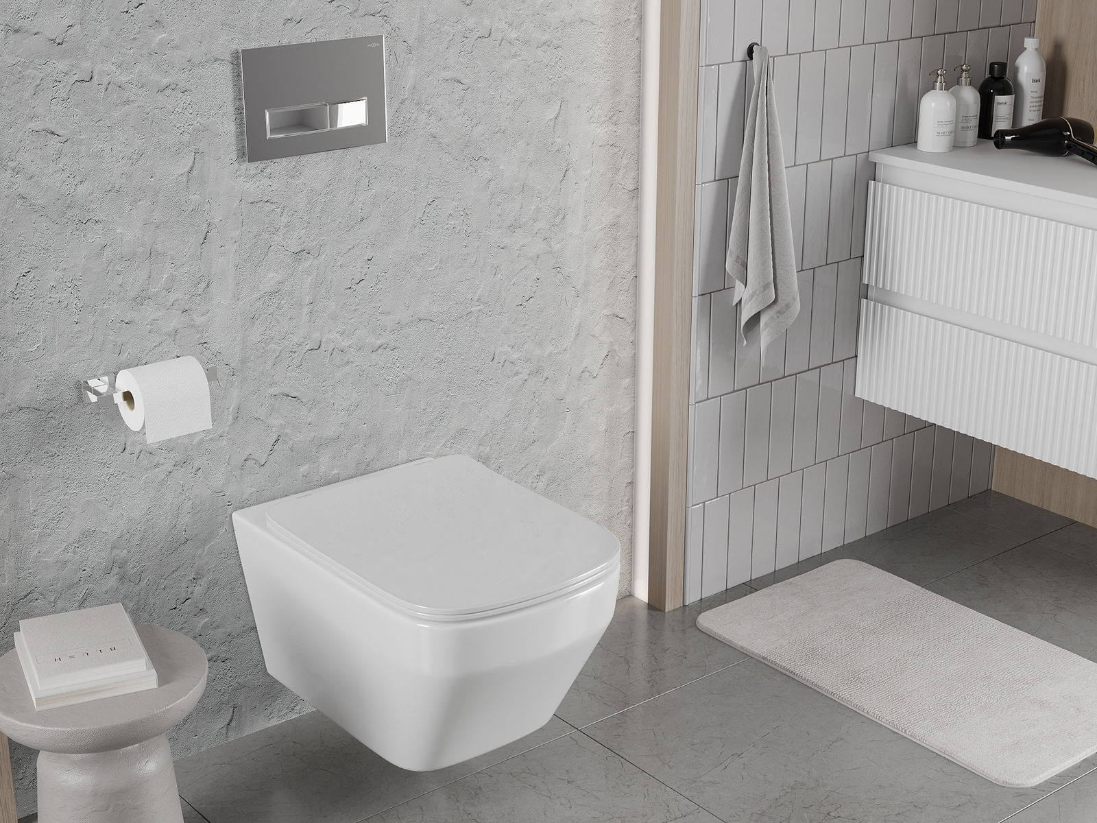 Tenká deska s výjimečně ergonomickým tvarem a mimořádně štíhlým vzhledem. Konstrukce se dokonale přizpůsobí modernímu interiéru koupelny, dodává pocit lehkosti. Skvělá volba pro minimalistická uspořádání.