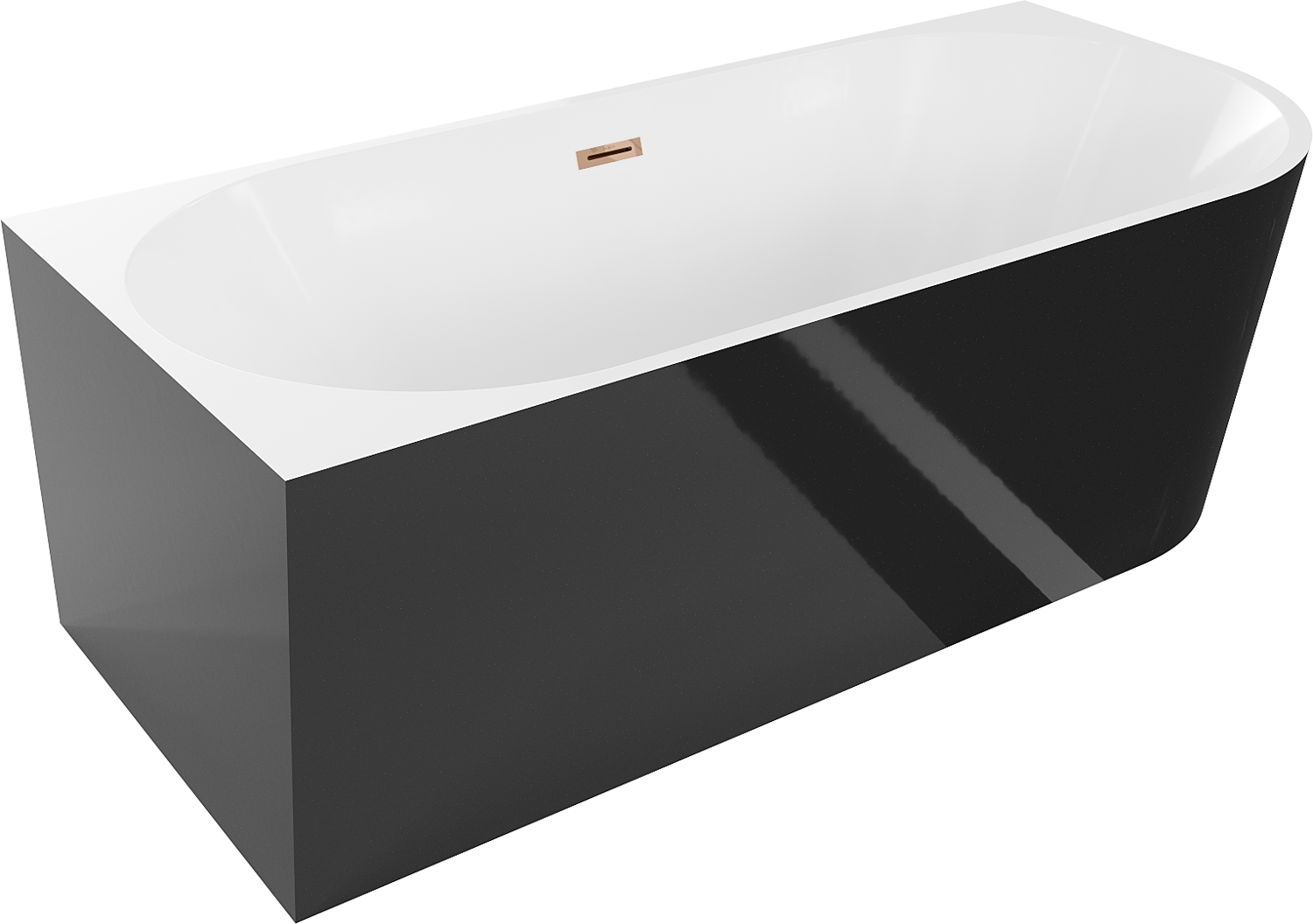 Mexen Mia volně stojící rohová levá vana 160 x 80 cm, bílá/černá, přepad růžové zlato - 52691608075L-60
