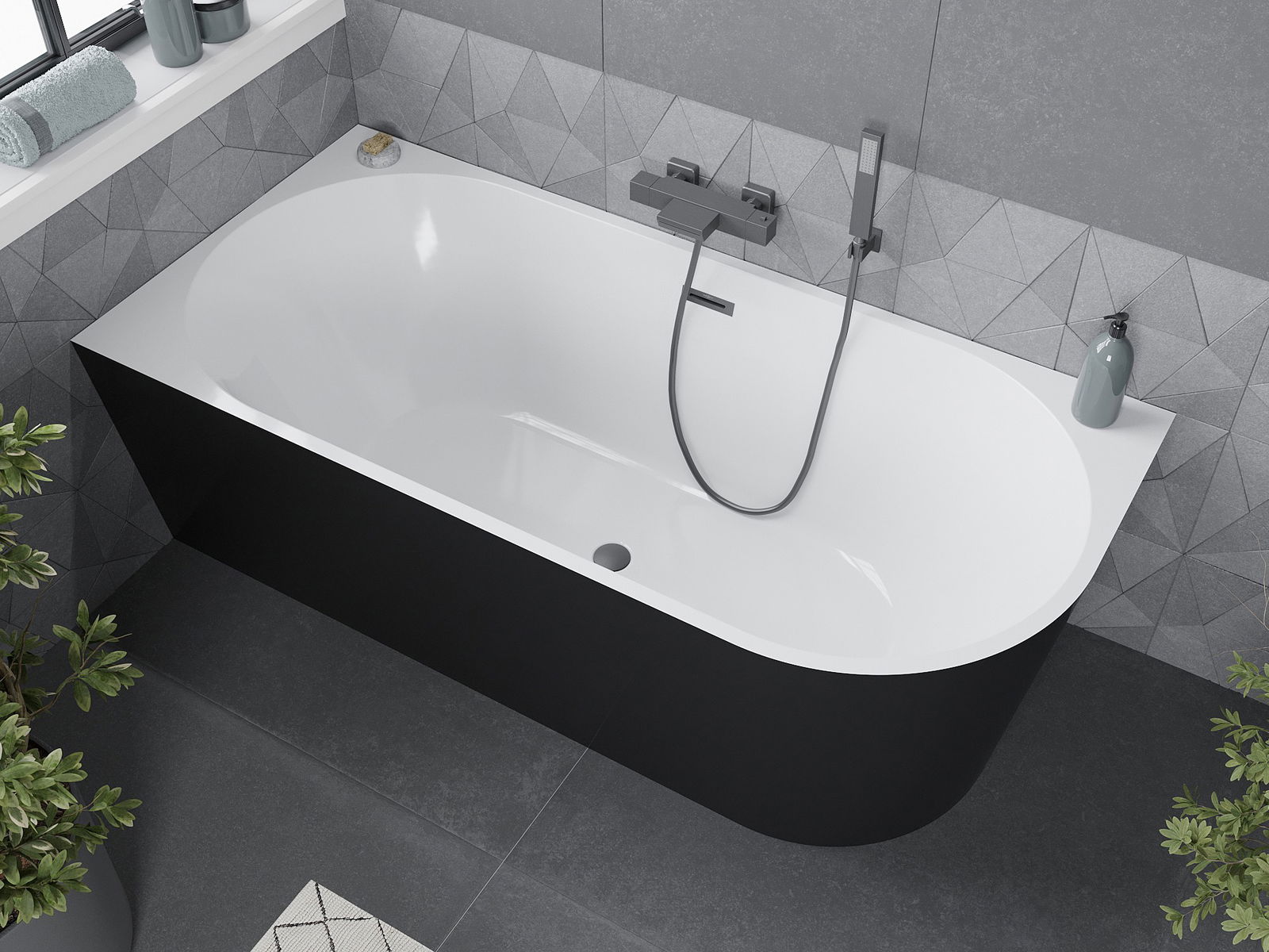 Mexen Mia samostatně stojící rohová vana levá 160 x 80 cm, bílá/černá, přepadová sestava gun metal - 52691608075L-95