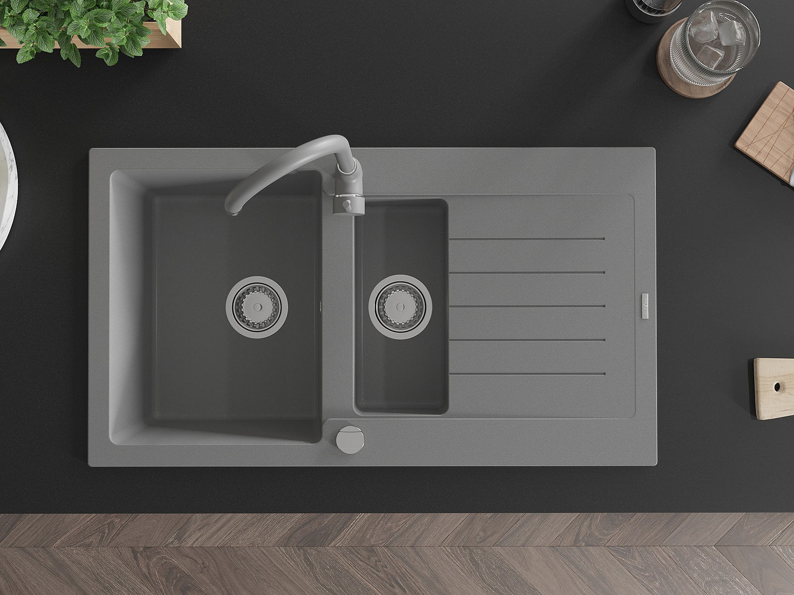 Dřez byl vyroben z vysoce kvalitního granitu. Představuje elegantní a především praktický doplněk každé kuchyně, bez ohledu na její styl. Vysoká kvalita a trvanlivost granitu zajišťují dlouholeté používání.