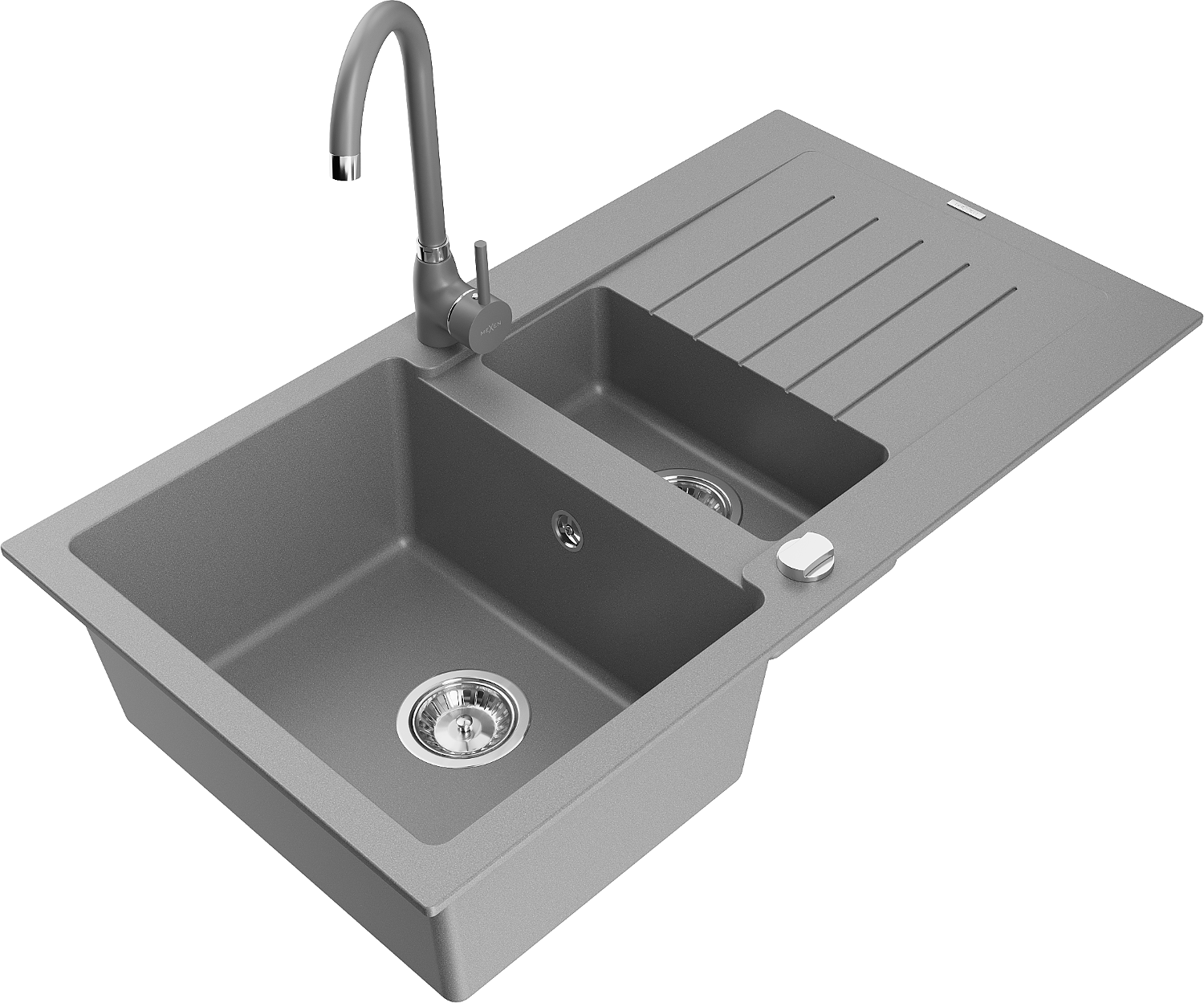 Mexen Matias žulový dřez s 1,5 komorami s odkapávačem a kuchyňskou baterií Telma, šedý - 6502-71-670200-71