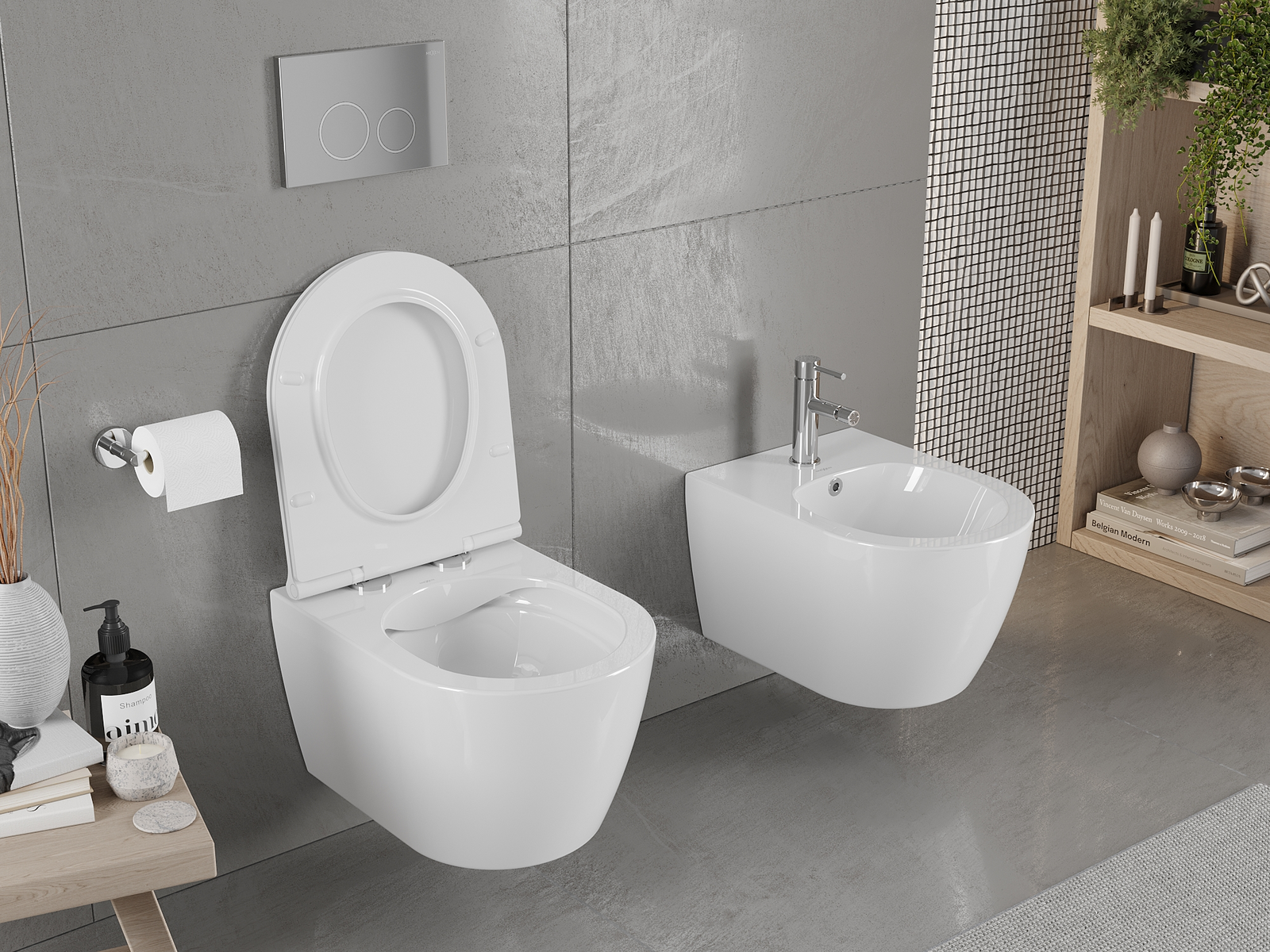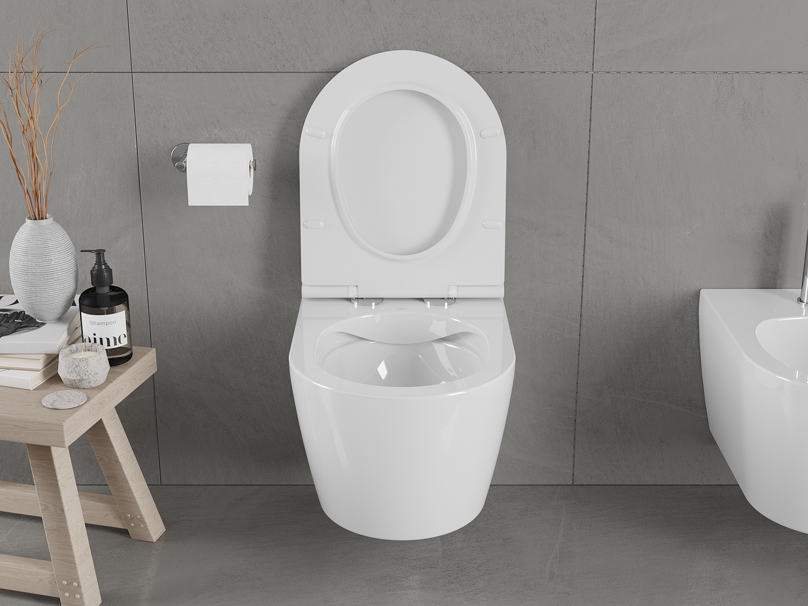 Mexen Carmen je moderní WC mísa, která se vyznačuje technologií splachování Rimless, jež zajišťuje větší hygienu a snadnou údržbu čistoty. Závěsná montáž umožňuje úsporu místa v koupelně. Produkt je vyroben z odolné sanitární keramiky v bílém lesku, což podtrhuje jeho elegantní vzhled. Slim deska s mechanismem pomalého sklápění a kovovými závěsy z duroplastu přidává na komfortu používání. Tento model nabízí praktická řešení, jako je snadné vypínání.