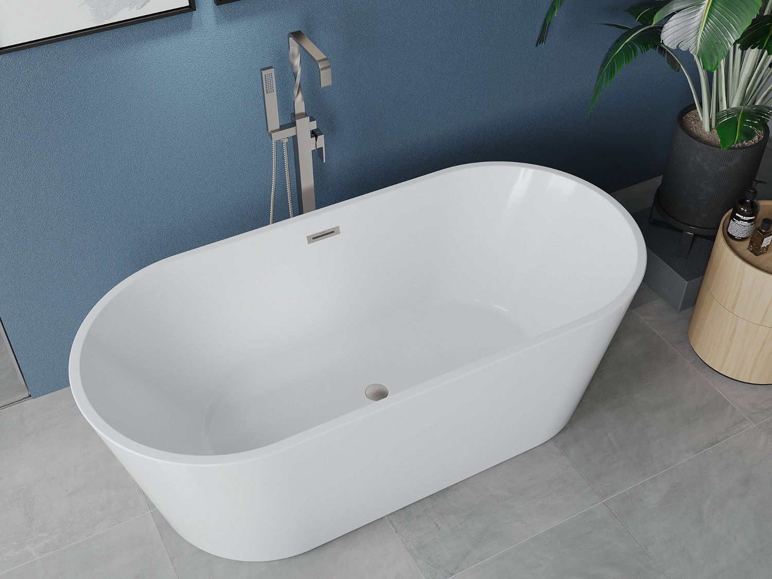 Mexen Luna volně stojící vana 140 x 75 cm, bílá, přepad kartáčovaný nikl - 52031407500-97