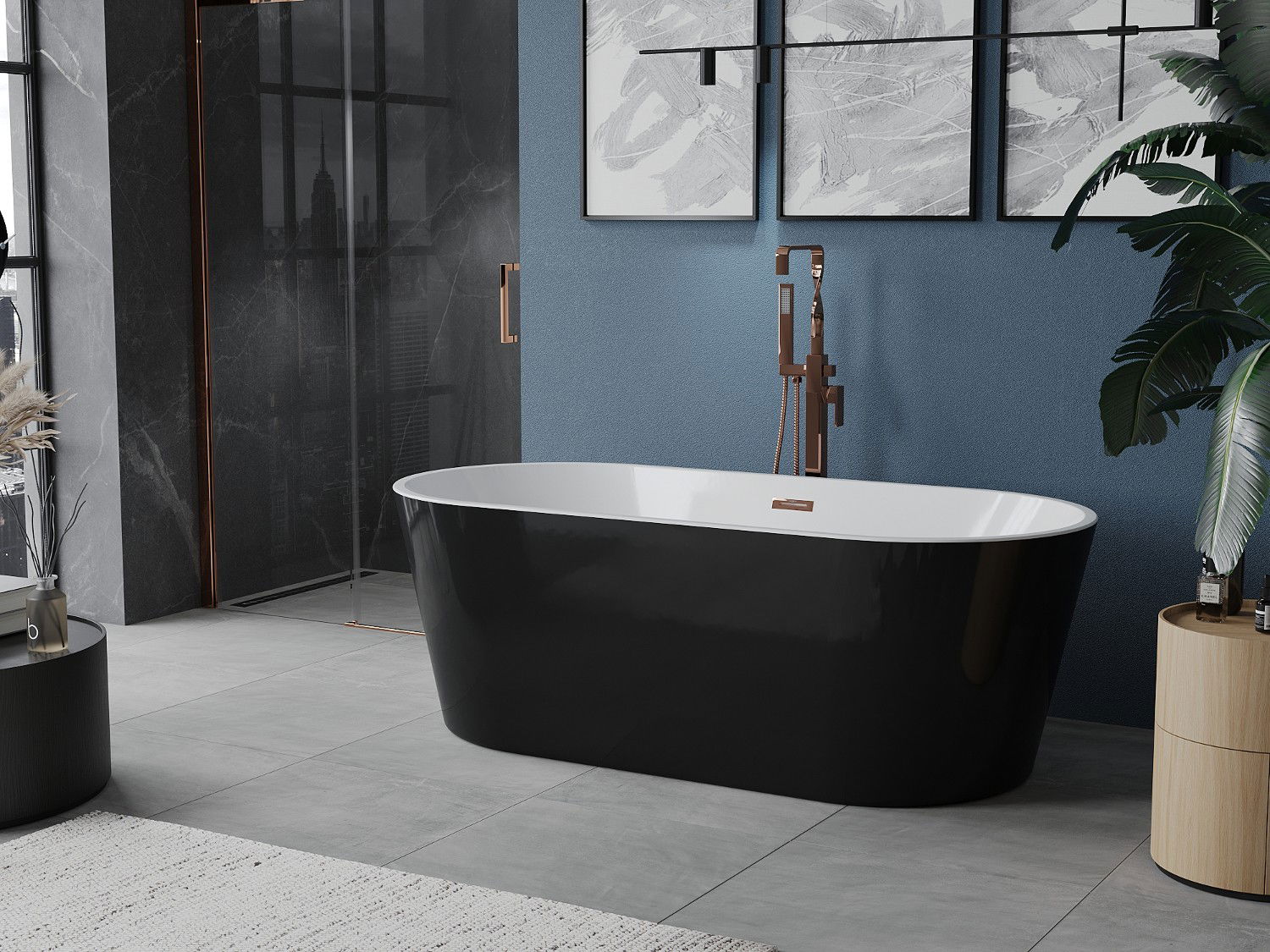 Mexen Luna samostatně stojící vana 140 x 75 cm, bílá/černá, přepad růžové zlato - 52031407575-60