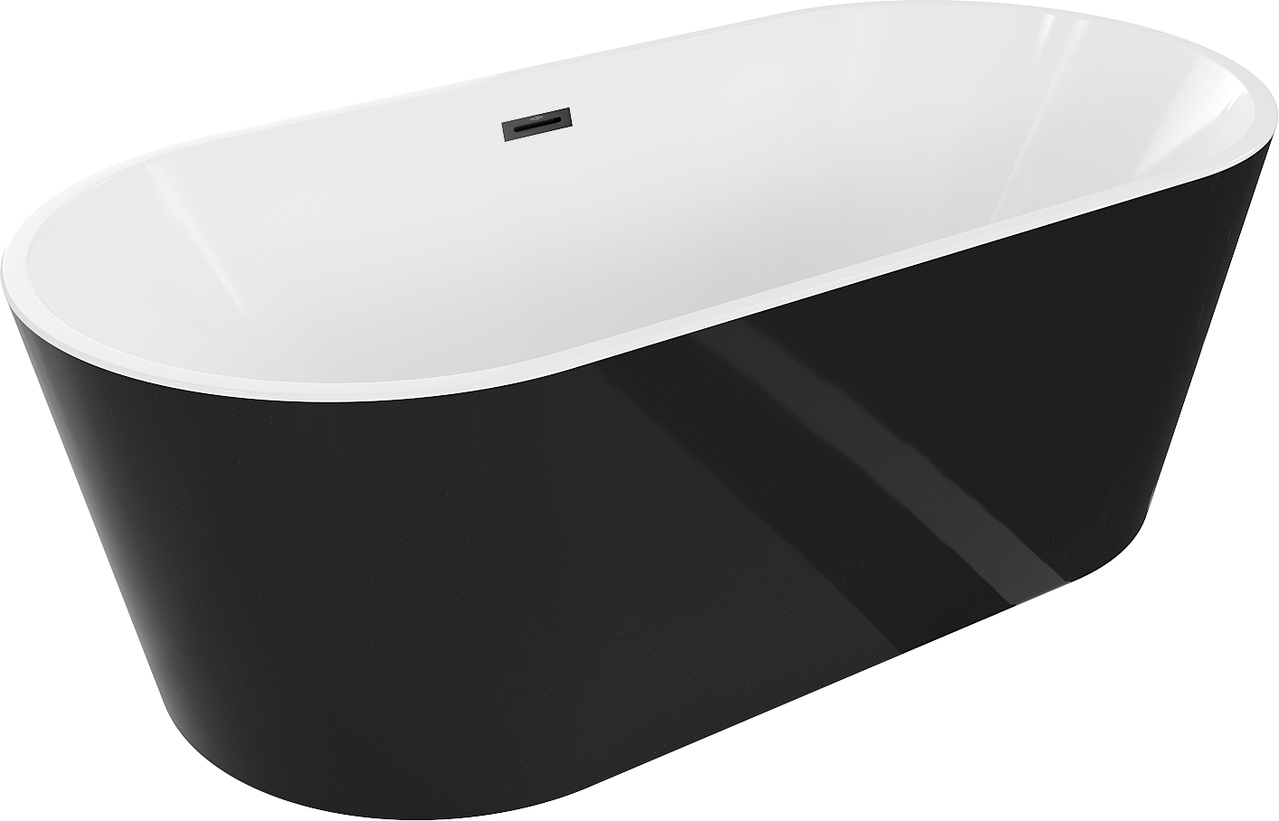 Mexen Luna volně stojící vana 140 x 75 cm, bílá/černá, černý přepad - 52031407575-70
