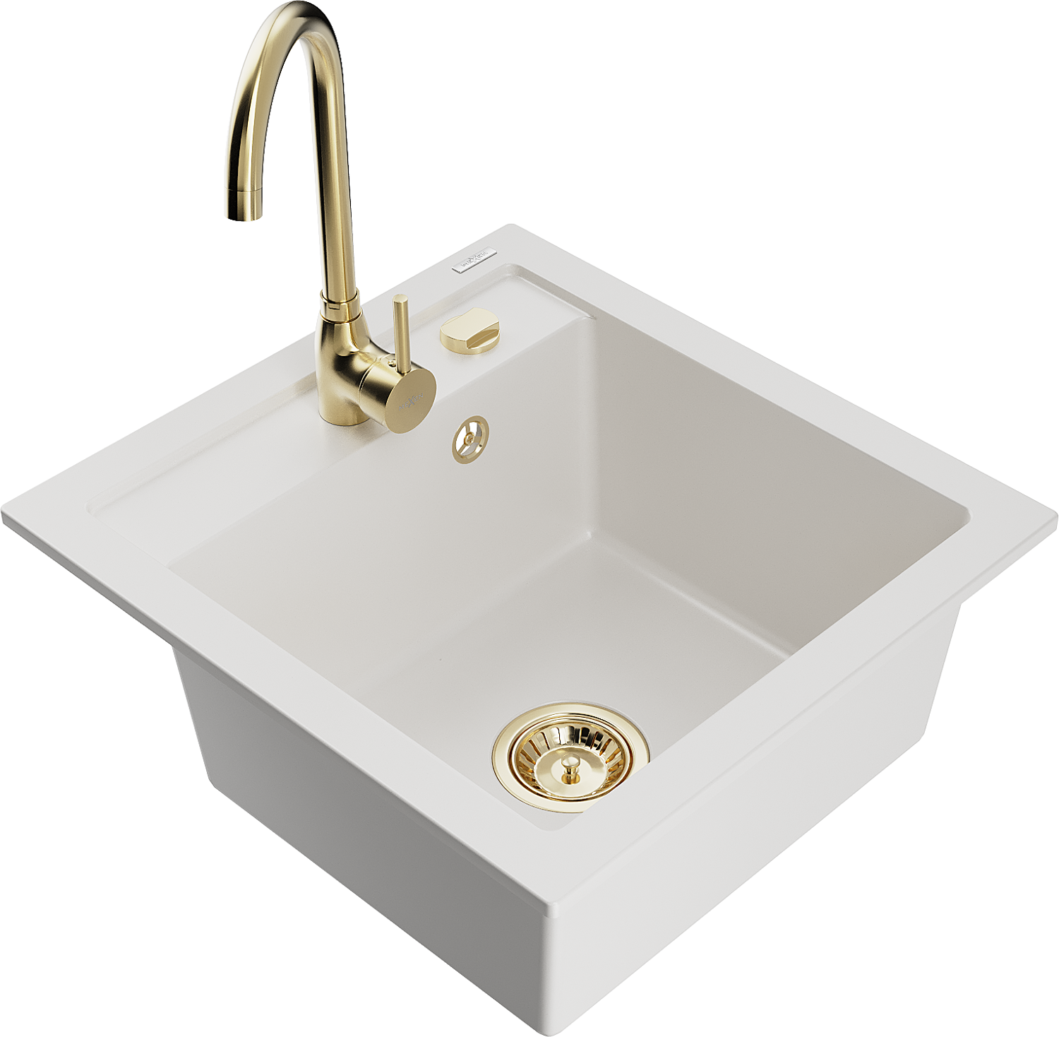 Mexen Vito granitový dřez 1-komorový s kuchyňskou baterií Telma, bílý - 6503-20-670200-50