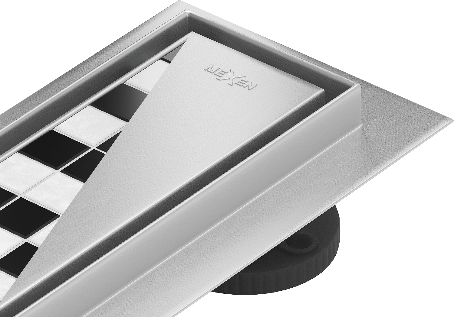 Oboustranná maska s možností otočení kdykoliv umožňuje změnu uspořádání. Z jedné strany je hladká nerezová ocel, po otočení lze masku obložit dlaždicemi, aby tvořila spojení s podlahou.