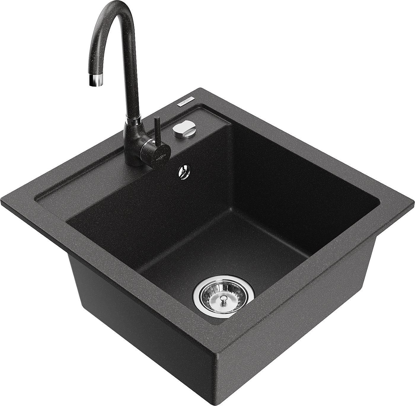 Mexen Vito granitový kuchyňský dřez 1-komorový s kuchyňskou baterií Telma, černý skvrnitý - 6503-76-670200-76