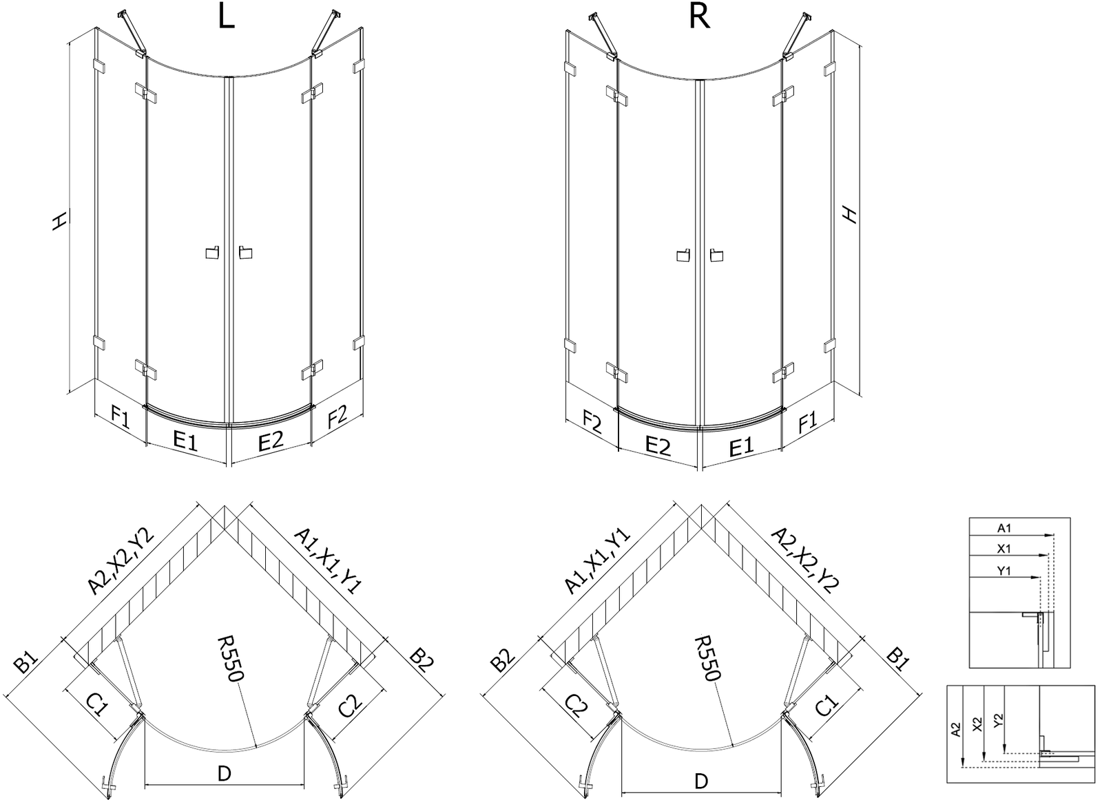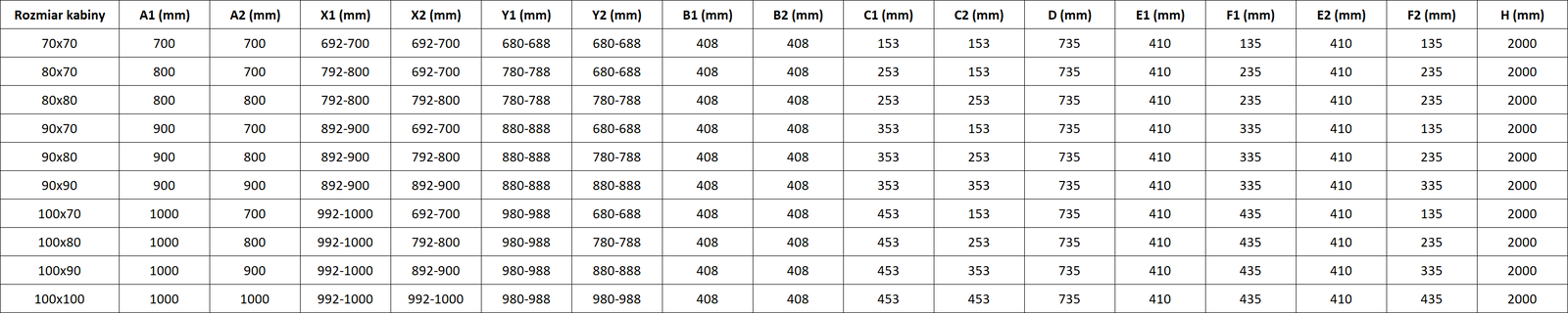 Sprchové kouty, dveře a stěny jsou standardně přizpůsobeny pro montáž na sprchové vaničky určitých rozměrů. Právě tyto rozměry jsou uvedeny v názvu nebo popisu výrobku. Je však třeba mít na paměti, že skutečné rozměry prvků se mohou mírně lišit od nominálních hodnot. V případě plánované instalace přímo na podlahu se doporučuje pečlivě zkontrolovat vnější rozměry a uspořádání prvků podle technického výkresu.