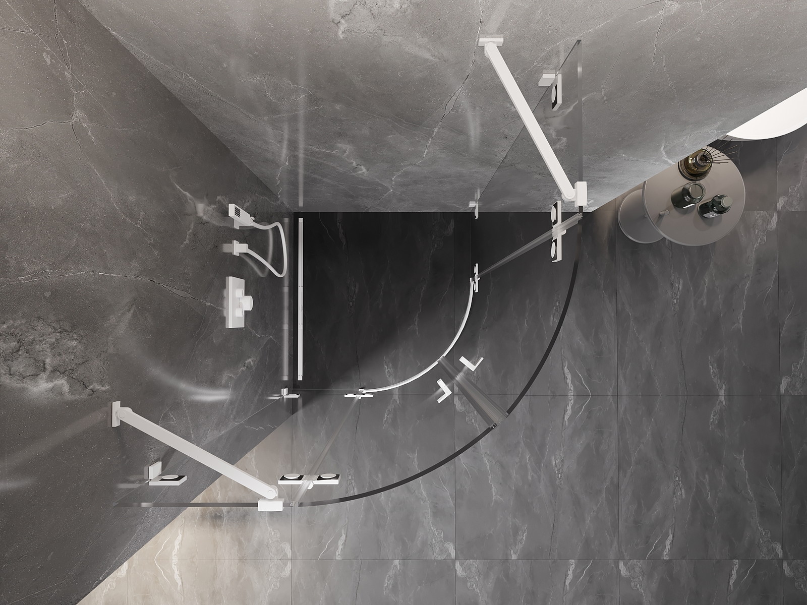 Praktická a pohodlná rukojeť je vyrobena z odolného a trvanlivého kovu. Moderní tvar ve spojení s povrchovou úpravou, která ladí s barvou profilů, dodává celku moderní a stylový vzhled, zdůrazňující estetiku každé koupelny.