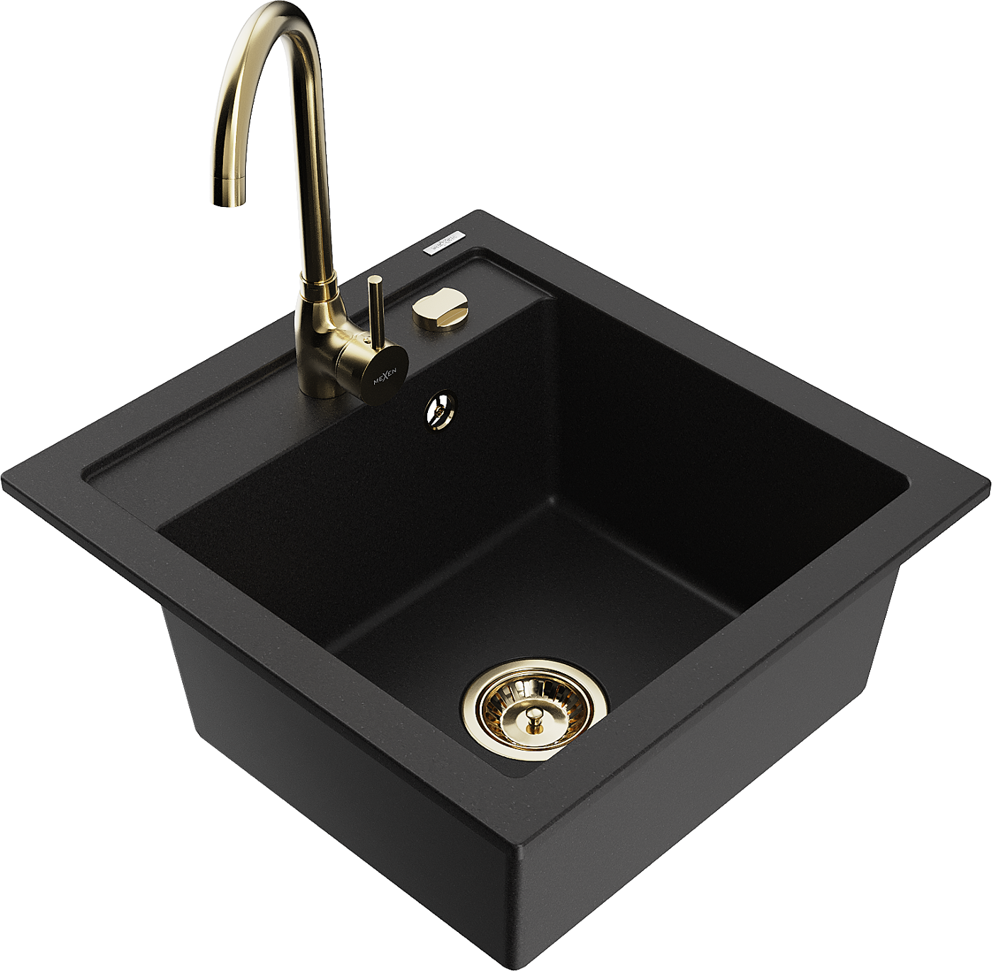 Mexen Vito granitový dřez 1-komorový s kuchyňskou baterií Telma, černý - 6503-77-670200-50
