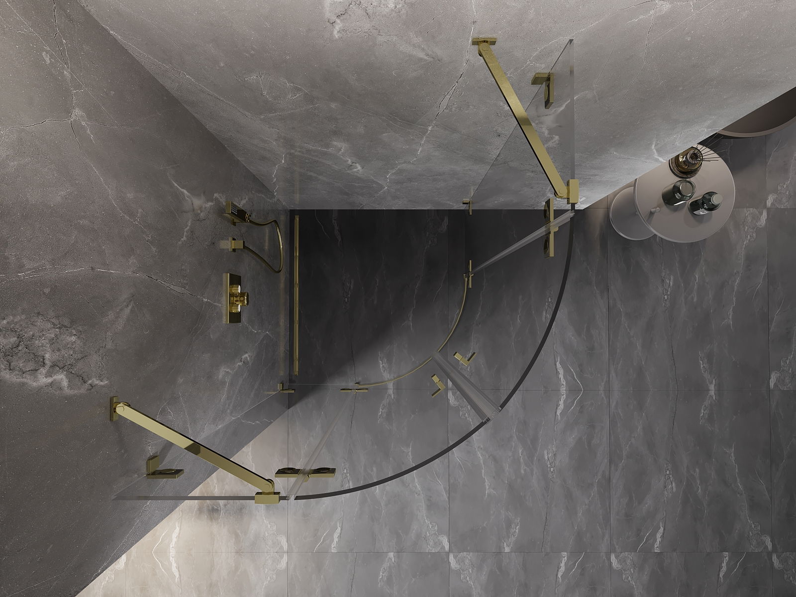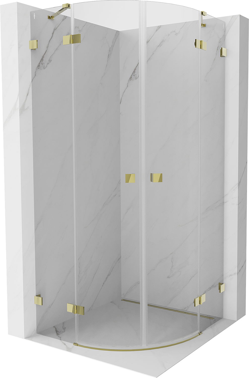Mexen Lunar čtvrtkruhový sprchový kout otevírací 90 x 90 cm, transparentní, zlatý - 833-090L-090P-50-00