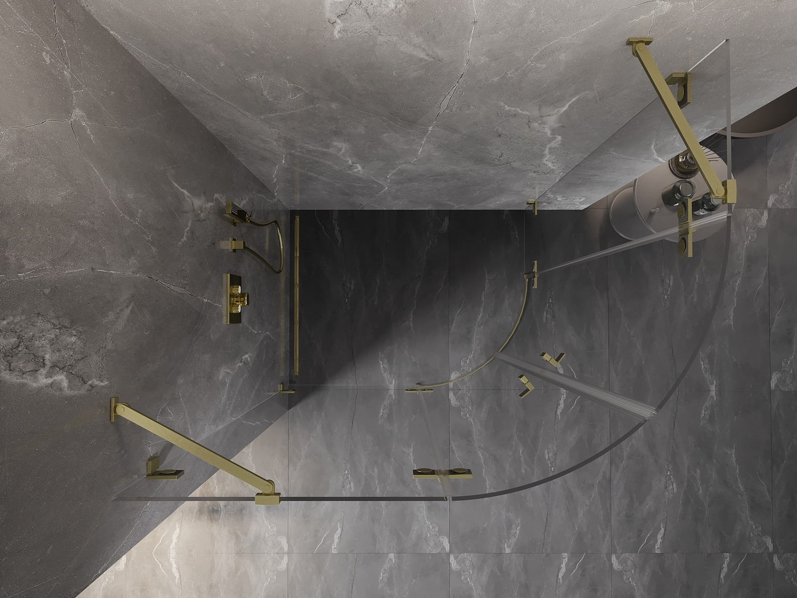 Mexen Lunar čtvrtkruhová sprchová kabina výkyvná levá 100 x 70 cm, transparentní, zlatá kartáčovaná