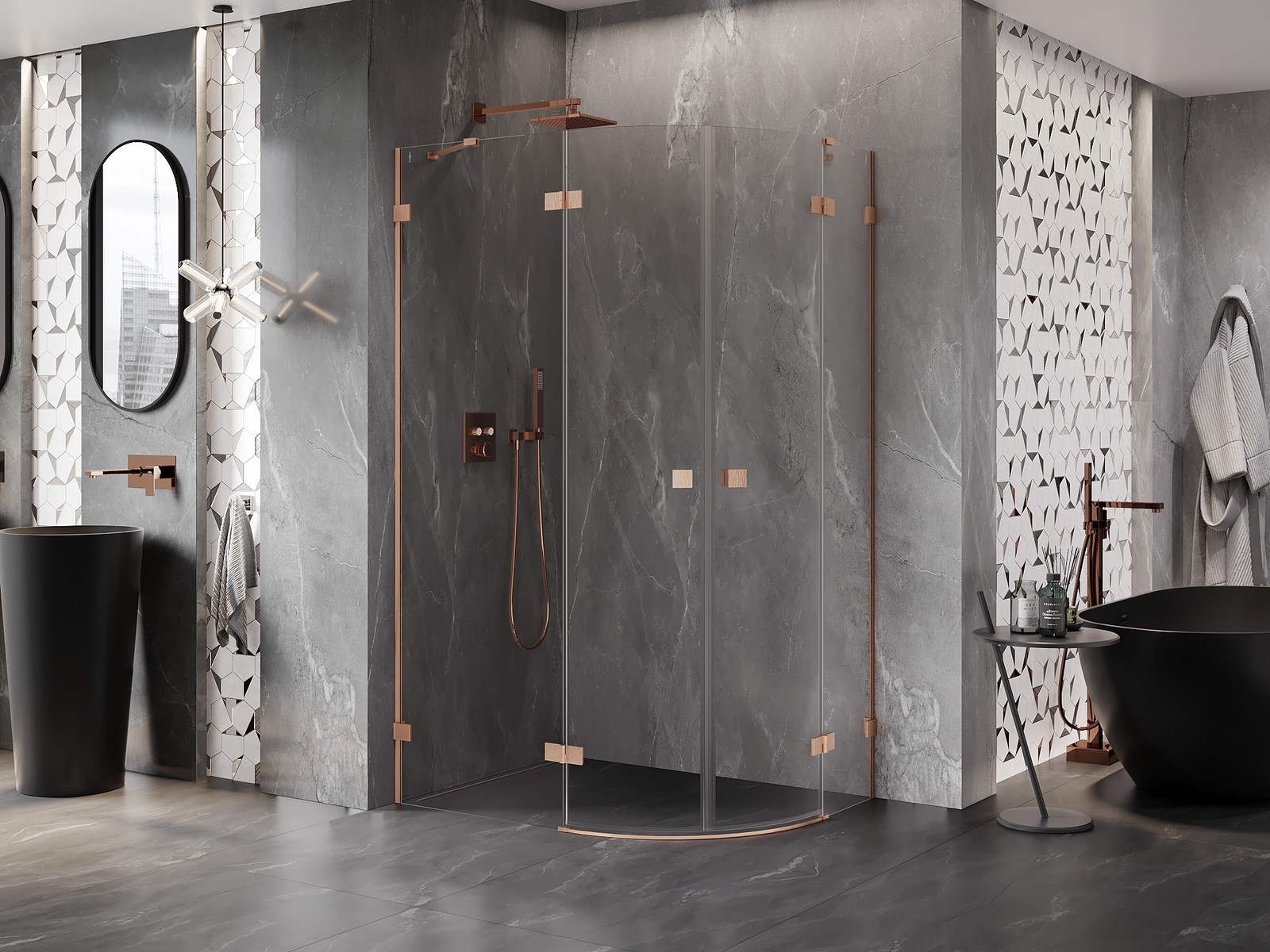 Sprchový kout Mexen Lunar je ideální kombinací elegance a funkčnosti. Díky rozměrům 90x80 cm a výšce 200 cm se dokonale hodí do různých koupelnových prostor. Vyznačuje se unikátní, výklopnou konstrukcí dveří s transparentním, tvrzeným sklem o tloušťce 8 mm, což zajišťuje trvanlivost a bezpečnost. Estetika kartáčovaného měděného povrchu a hliníkový profil přidávají na modernosti. Dva systémy montáže a mechanismus zvedání dveří a možnost montáže na vaničku nebo dlaždice zaručují flexibilitu. Povlak usnadňující čištění a magnetická lišta s elastomerovými těsněními se starají o snadnost udržování kabiny v čistotě.