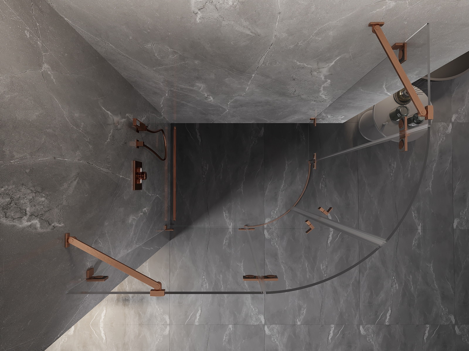 Mexen Lunar sprchový kout půlkruhový výklopný levý 90 x 80 cm, transparentní, kartáčovaná měď - 833-090L-080P-65-00
