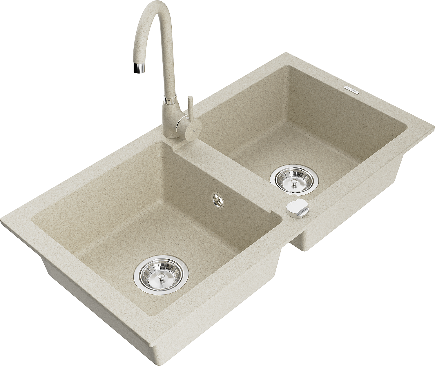 Mexen Mario dřez granitový 2-komorový s kuchyňskou baterií Telma, béžový - 6504-69-670200-69