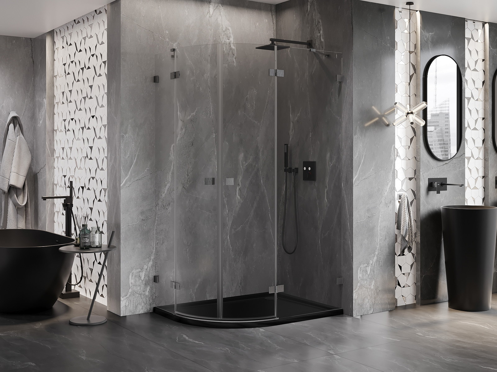 Praktická a pohodlná rukojeť je vyrobena z odolného a trvanlivého kovu. Moderní tvar ve spojení s povrchovou úpravou, která ladí s barvou profilů, dodává celku moderní a stylový vzhled, zdůrazňující estetiku každé koupelny.