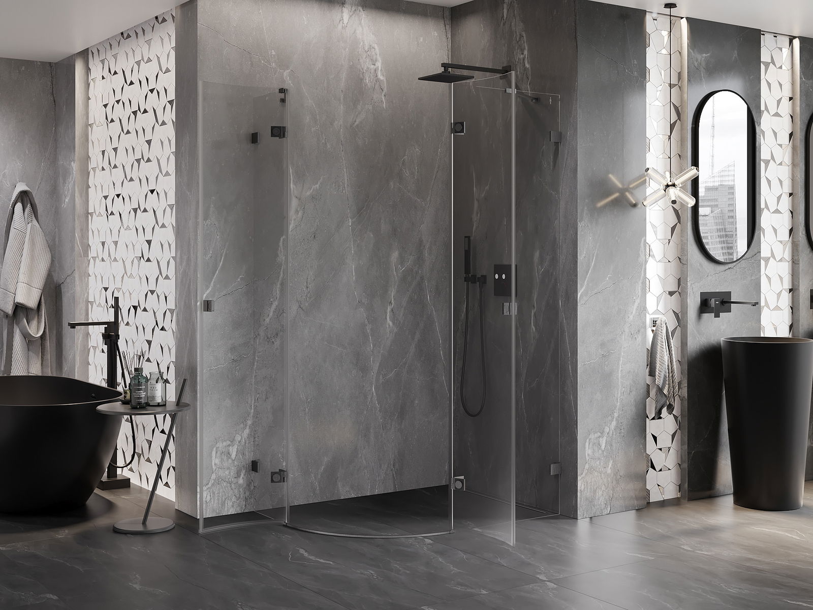 Praktická a pohodlná rukojeť je vyrobena z odolného a trvanlivého kovu. Moderní tvar ve spojení s povrchovou úpravou, která ladí s barvou profilů, dodává celku moderní a stylový vzhled, zdůrazňující estetiku každé koupelny.