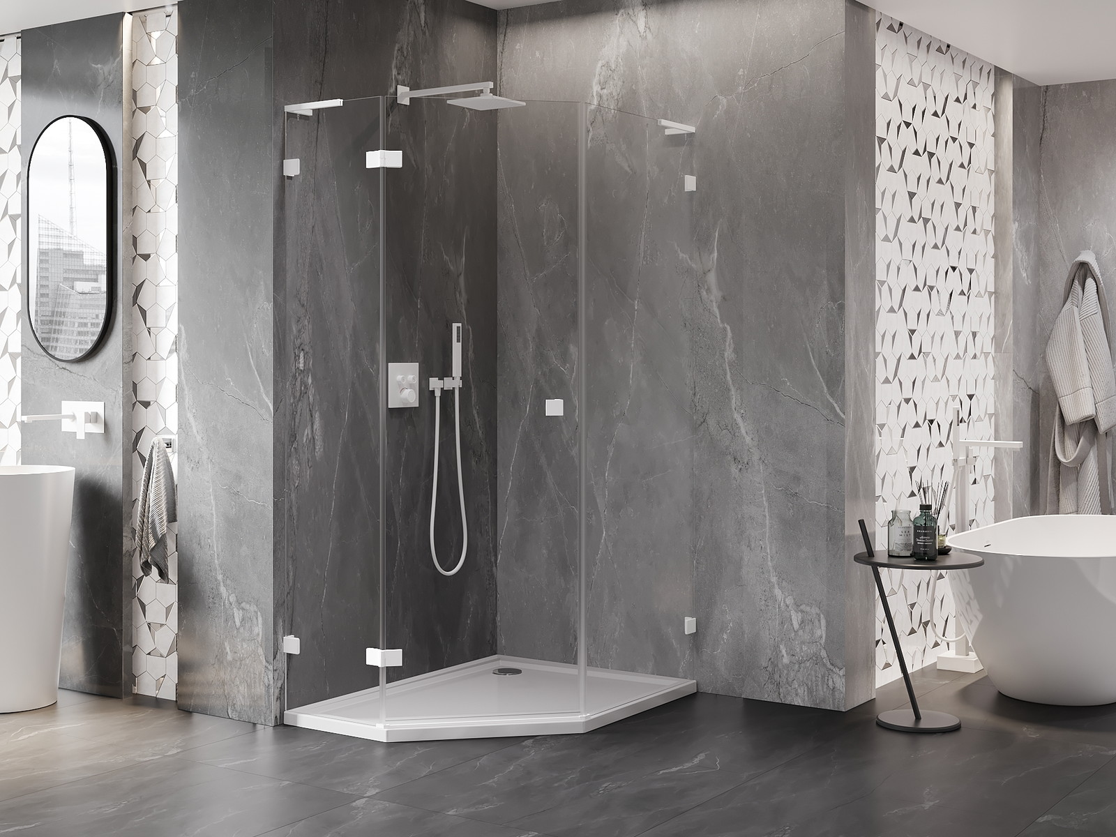 Praktická a pohodlná rukojeť je vyrobena z odolného a trvanlivého kovu. Moderní tvar ve spojení s povrchovou úpravou, která ladí s barvou profilů, dodává celku moderní a stylový vzhled, zdůrazňující estetiku každé koupelny.