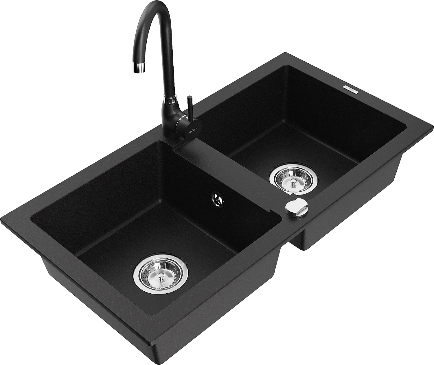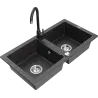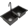 Mexen Mario dvoukomorový žulový dřez s kuchyňskou baterií Telma, černý - 6504-77-670200-70