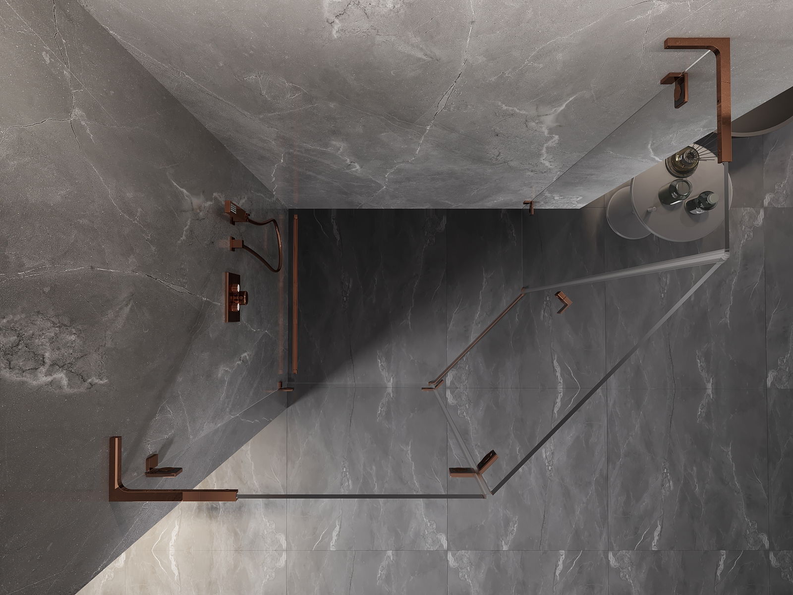 Mexen Lunar L pětiúhelníkový sprchový kout otevírací levý 100 x 80 cm, transparentní, růžové zlato - 831L-100L-080P-60-00-L