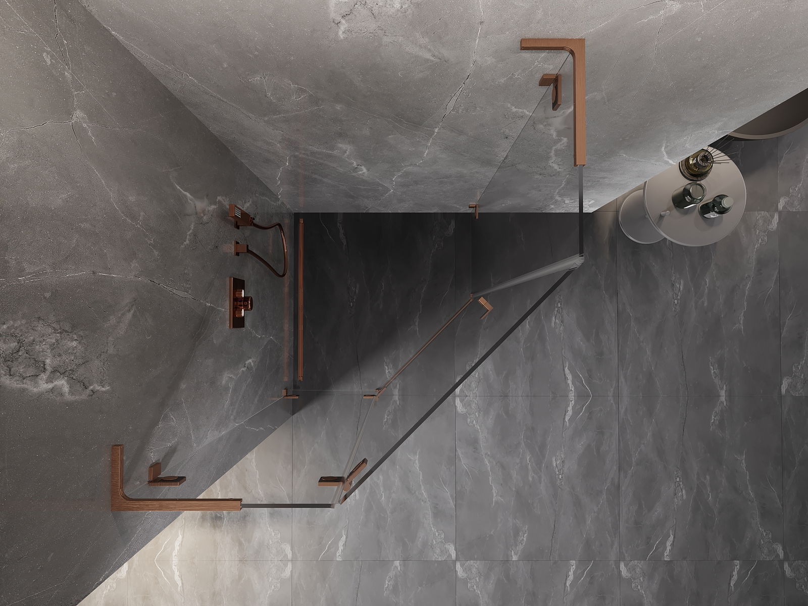 Mexen Lunar L pětiúhelníková sprchová kabina, levá, 90 x 90 cm, transparentní, kartáčovaná měď - 831L-090L-090P-65-00-L