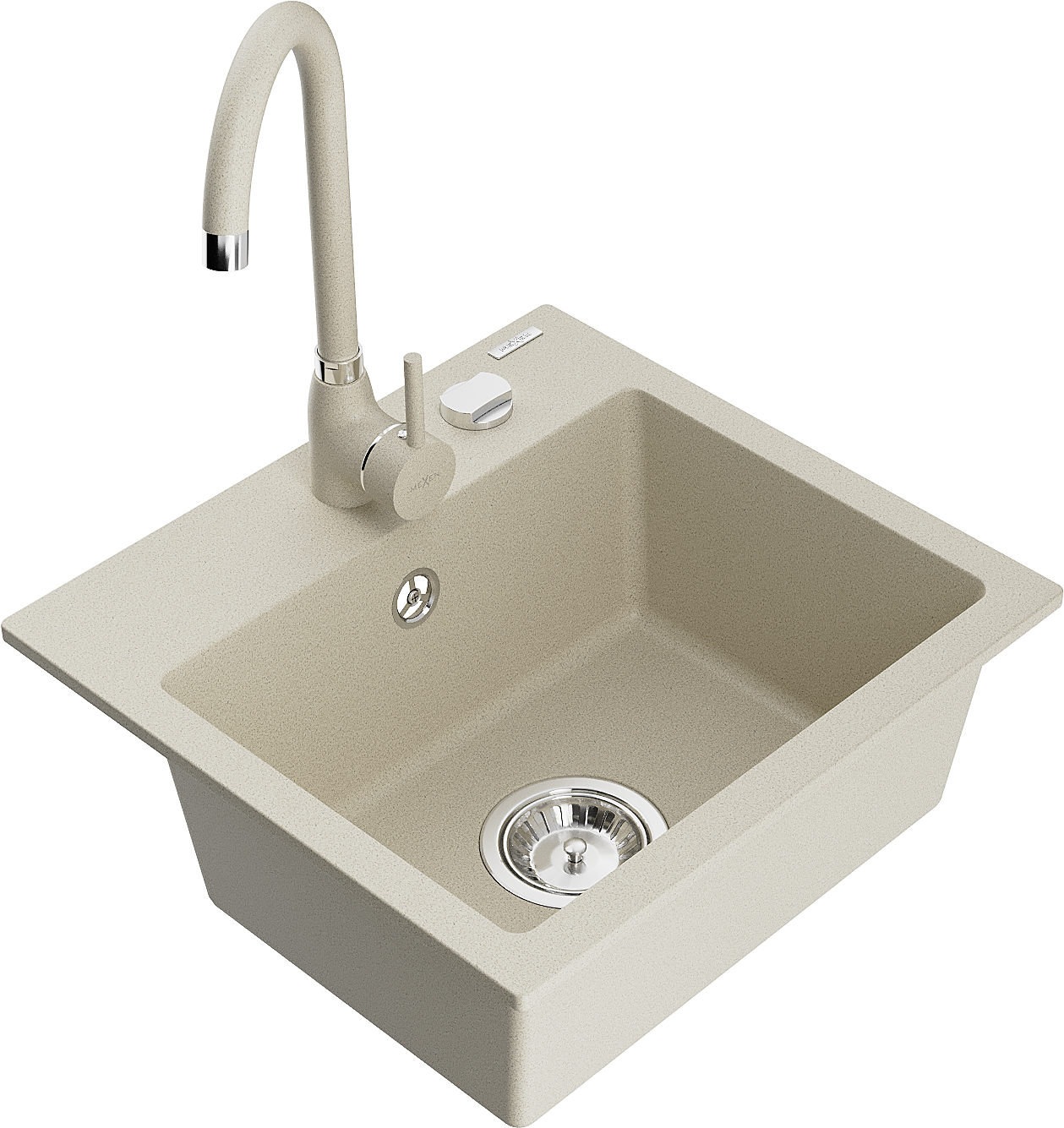Mexen Milo granitový dřez 1-komorový s kuchyňskou baterií Telma, béžový - 6505-69-670200-69